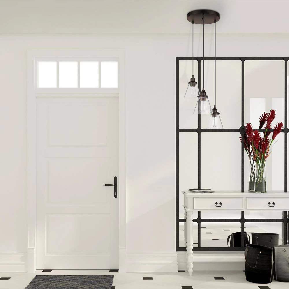 Brighten up your space with the Jackson 3-Light Pendant. Utilizing its dark bronze finish and clear glass shades, the unique and appealing design is very versatile and can look stunning over a stylish dining room table or can be a centerpiece in a sunroom where the dark bronze finish warms up the space. The stunning shape and overall feel of this pendant completements a variety of decor styles from coastal, to vintage to contemporary alike.