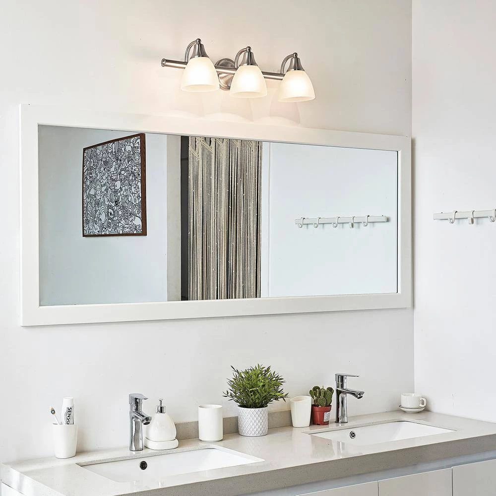 - Frosted glass shades: the frosted glass evenly disperses light and matches almost every decor, so you can use this vanity wherever your heart desires