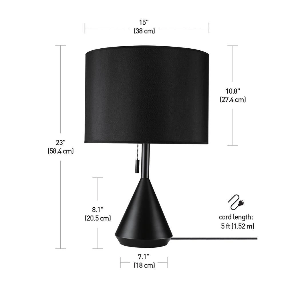 Lamps are the perfect way to brighten up the dark corners of your room and can also add a touch of stylish flair. The Kara Lamp Collection boasts a bold black finish and fabric shade to create a stunning modern profile. The black finish and drum shade combines the best of refined design with a modern color palette to bring you a modern refined lamp essential for any space in your home. Standing at 23 in. H, this table lamp looks great next to your bed or sofa and can easily be moved into any room your heart desires.