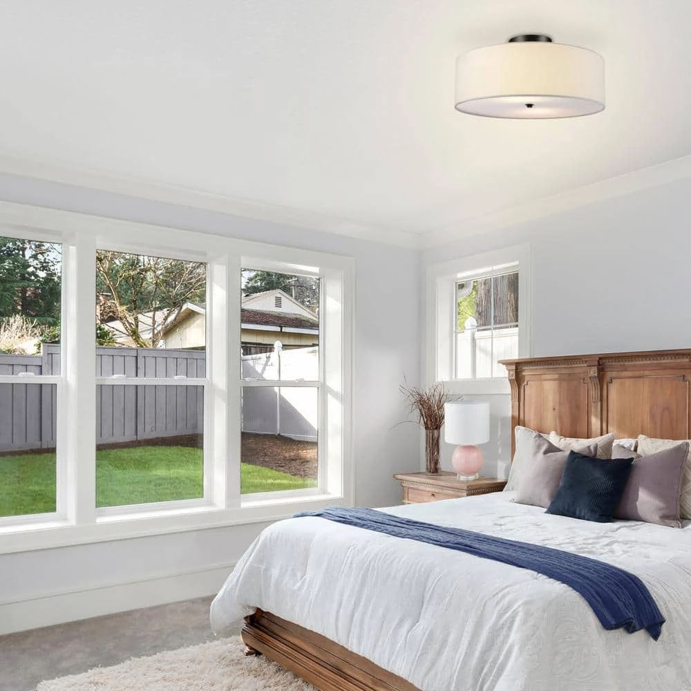 Ceiling lights can not only light up your whole room – they’re also a great way to show off your personal style. Utilizing a white fabric shade and a dark bronze finish, the Kyle 2-Light Flush Mount Ceiling Light offers a traditional minimalist feel. The white fabric complements with all decor styles while providing a warm even light. Ideal for a dining room, entryway or bedroom, this light will entice your senses as well as illuminate your home.