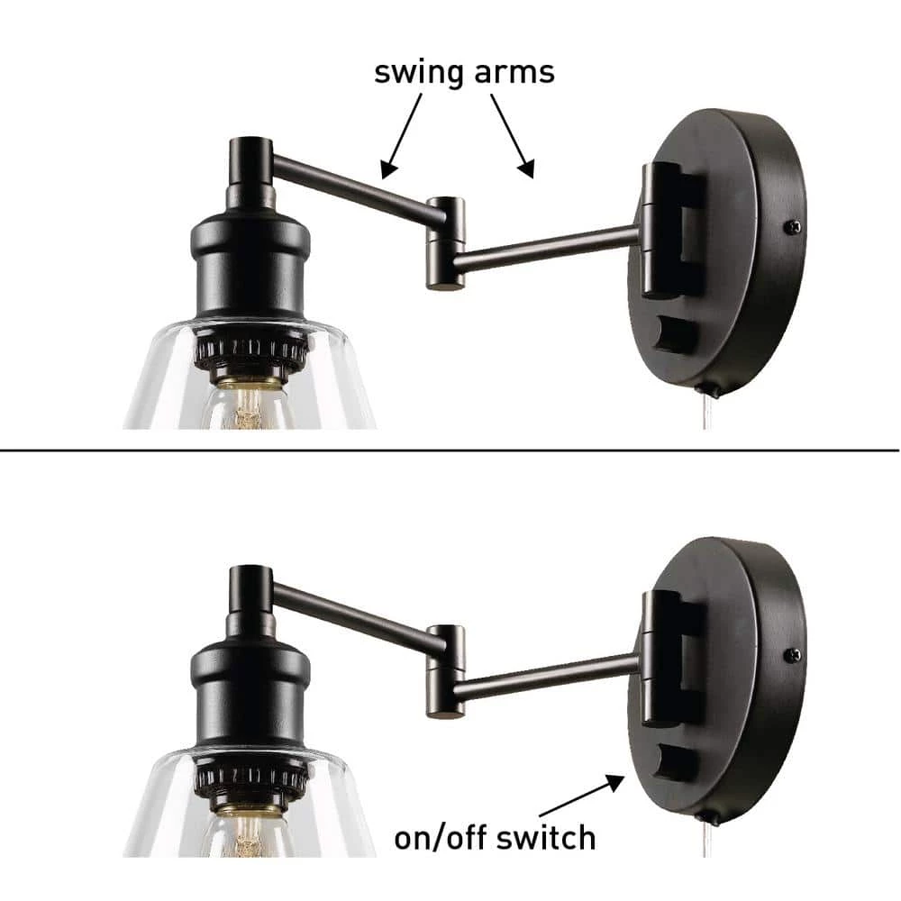 Fashioned after vintage inspired lighting Globe Electric’s LeClair 1-Light Plug-In or Hardwire Industrial Wall Light adds a rustic industrial feel to any room. Leave it as a plug-in to move it easily and create different looks in different rooms or hardwire it to your wall for a long lasting look. The clear glass shade and exposed bulb easily create different lighting ambiance and moods when adding bulbs of different brightness. Check out Globe Electric’s assortment of vintage inspired designer bulbs for a look that is truly your own. Ideal for use in kitchens, restaurants, bars, and dining rooms. Includes all mounting hardware for quick and easy installation and requires one 60W equivalent E26 light bulb (sold separately).