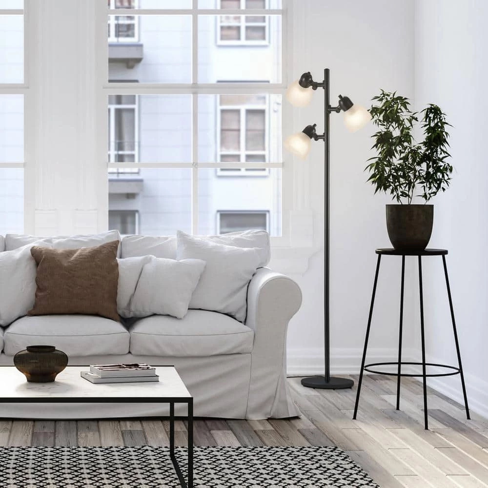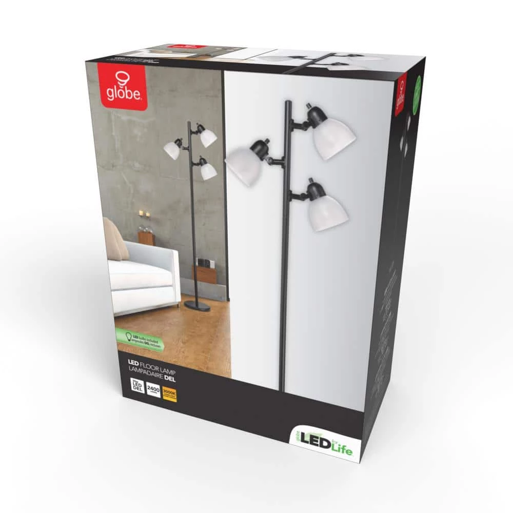 Globe Electric’s LED for Life 3-Light LED Tree Floor Lamp is a great way to brighten up your space. 3-spotlights can be turned on or off individually to create the perfect atmosphere. Each spotlight is adjustable and rotates 180° so you can direct the light where you need it most. The contemporary design is perfect with any decor. Standing at 63 in. , it is the perfect height for living rooms, study’s and bedrooms alike. Ensuring easy placement, the long cord can plug into any outlet so you can place the lamp wherever it works best. The included medium base A19 LED bulbs last longer than regular incandescent saving you time and money.