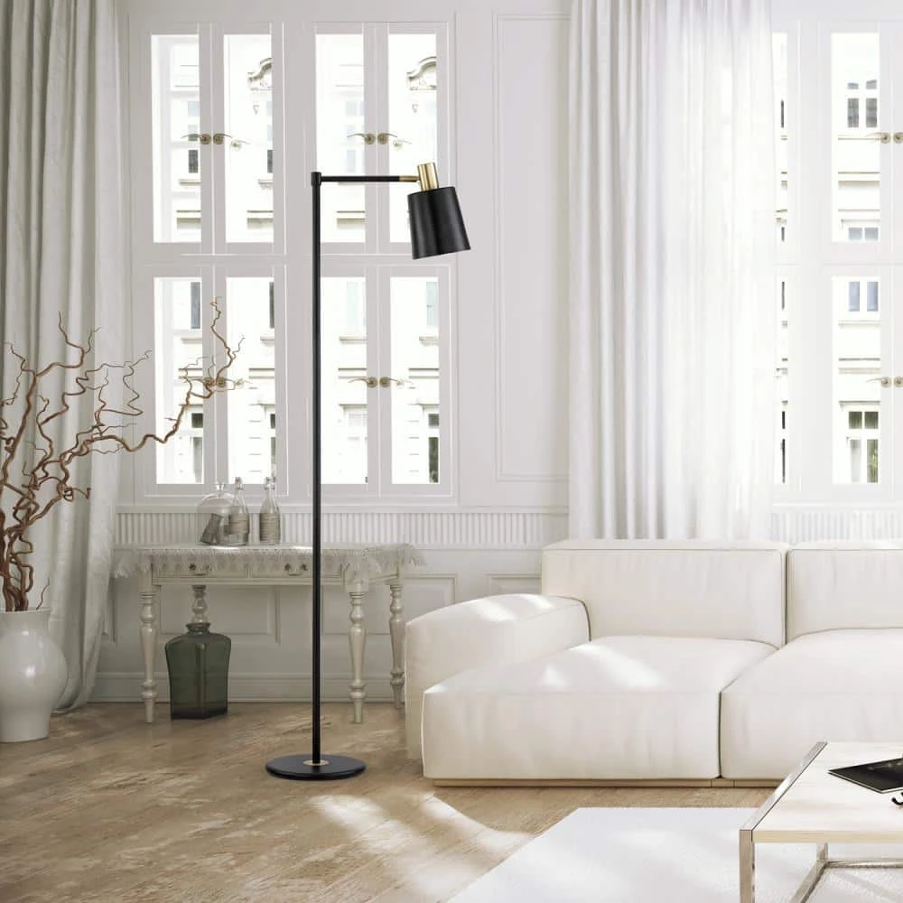 - Industrial luxe: clean geometric lines with an industrial black finish are highlighted by luxurious gold accents to bring the Lex floor lamp into a luxurious yet industrial design