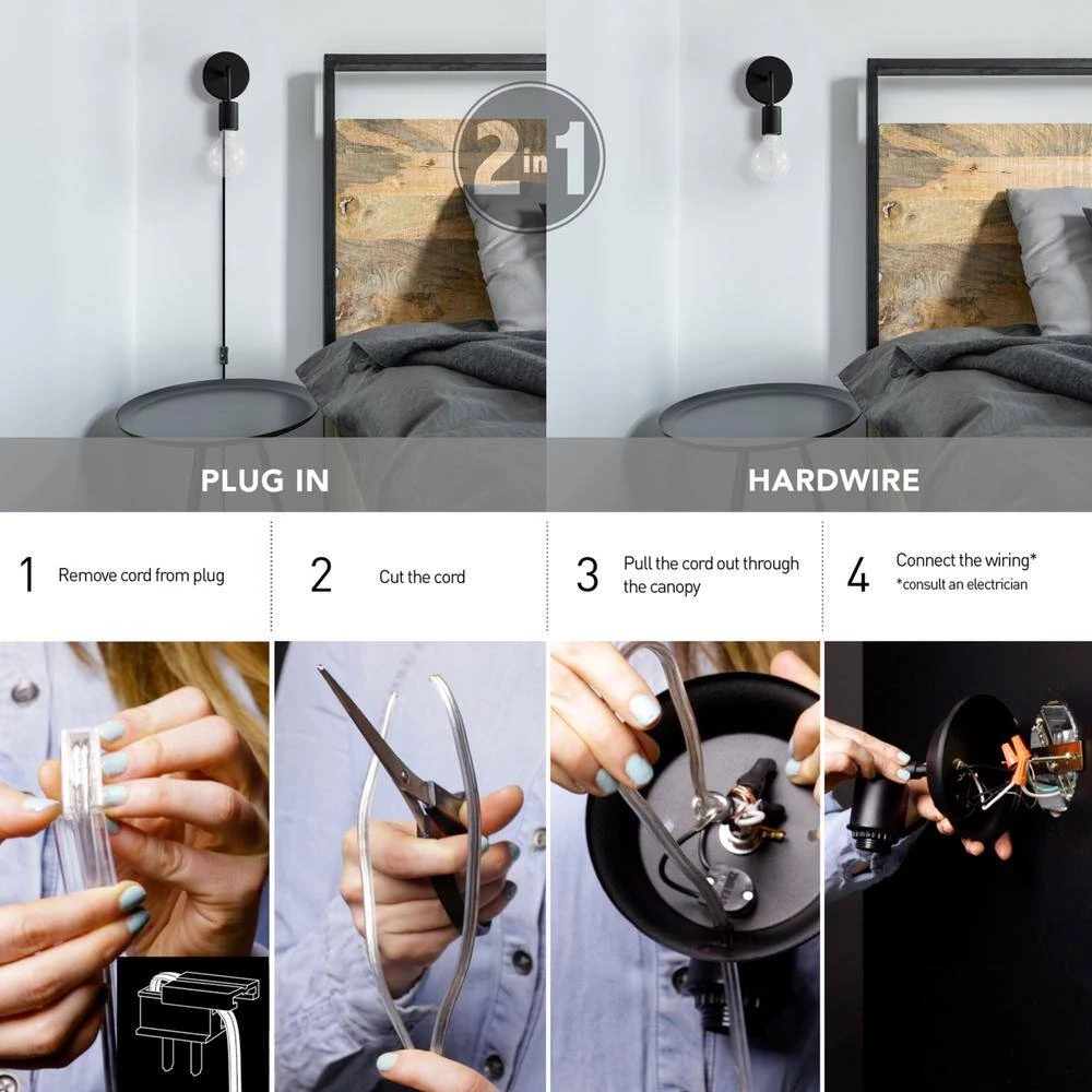 - Plug-in or hardwire capability: the innovative 2-in-1 design allows you to install your wall light as a plug-in so you can place it anywhere in your home or use the hardwire option to create a sleek cordless look