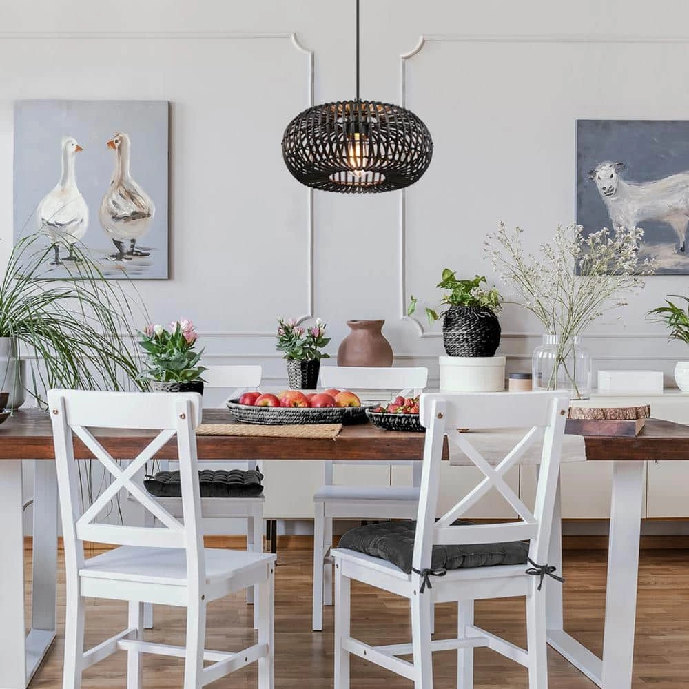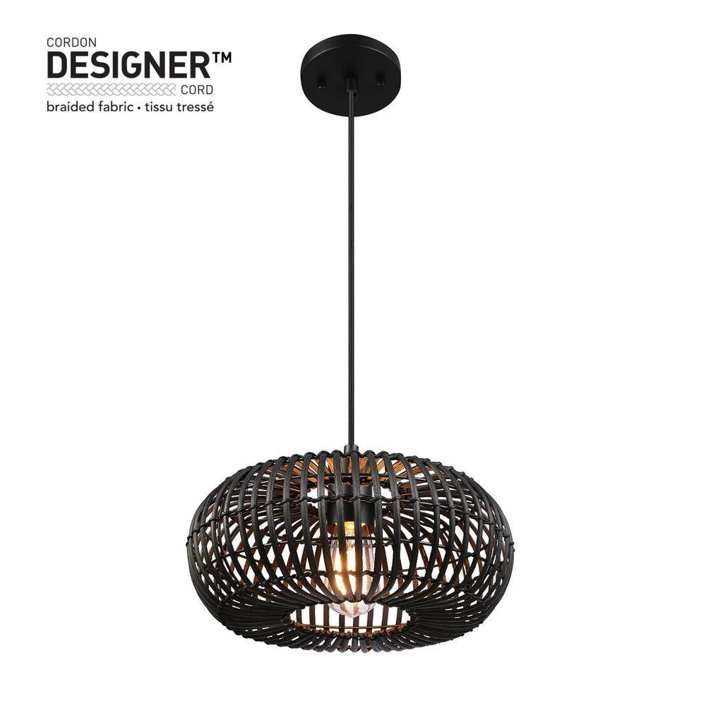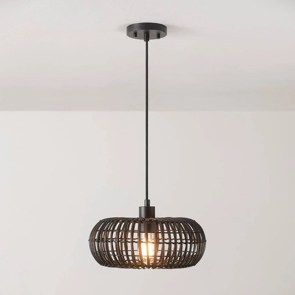 The Maren Pendant Light offers a stunning take on the modern farmhouse design. Its uniquely shaped rattan shade screams country yet eclectic styling, filled with sophistication and rustic qualities. With a black hanging cord, this pendant can be seamlessly integrated into any modern room while maintaining a minimalistic feel. Fully dimmable with a compatible dimmer switch (not included), you can create the perfect lighting ambiance and mood for any situation. This pendant is perfect for a living room, dining room or office arrangement.