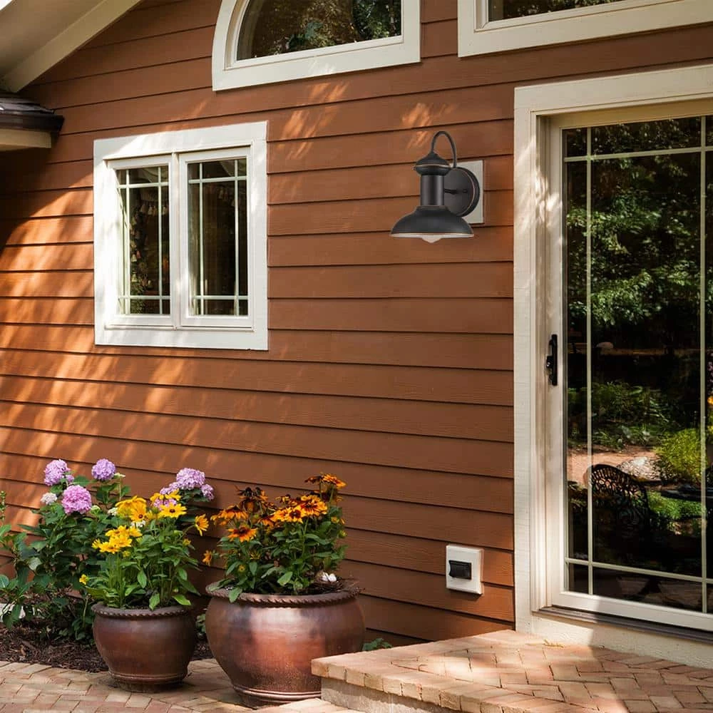 Fashioned after factory and barn lighting Globe Electric’s Martes 10 in. Downward Wall Mount Indoor/Outdoor Entryway Light Fixture adds a vintage industrial feel to any space. Suitable for any environment this piece is fully water resistant and Versatile meaning you can place it in your entryway or inside your entrance for a wonderful look. Fully compatible with Dimmable LED bulbs and dimmer switch the exposed bulb easily creates lighting ambiance and different moods. Includes all mounting hardware for quick and easy installation and requires one 60W max E26 Edison bulb (sold separately).