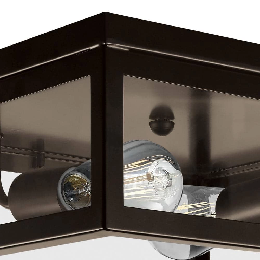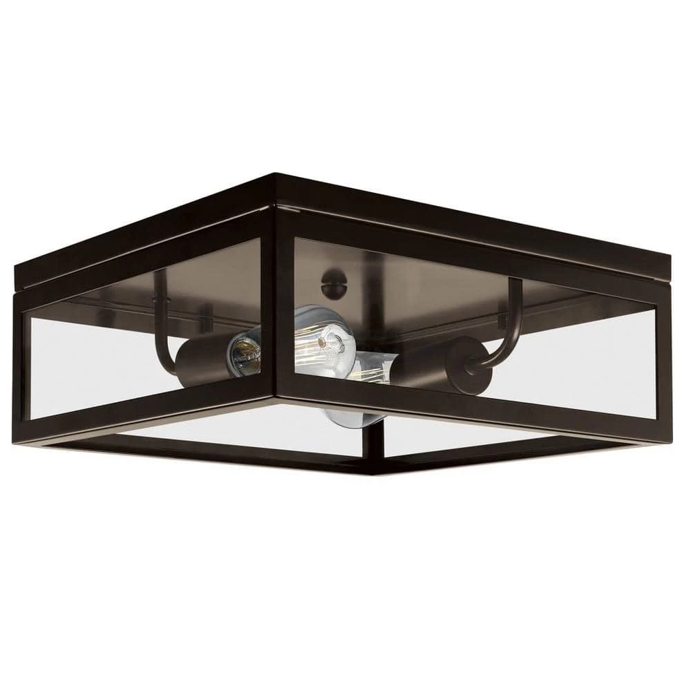 Update your space easily with Globe Electric’s Memphis 2-Light Flush Mount Ceiling Light. The straight clean lines and clear glass panes bring a contemporary yet industrial feel to any decor. The simplicity of the design allows you to change the look and feel of any room easily and without clutter. Add a Globe Electric vintage inspired bulb to create a look that is truly unique. The dark bronze finish, wonderfully smooth and rich to the touch, absorbs the light in just the perfect way while the clear glass panes showcase the bulbs of your choice. Comes with four glass panes – one for each side. There is no glass pane for the bottom of this fixture.