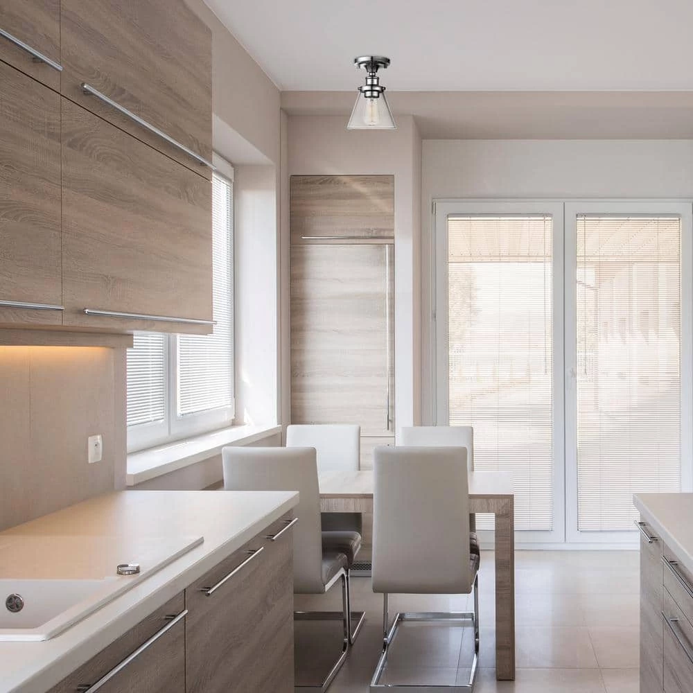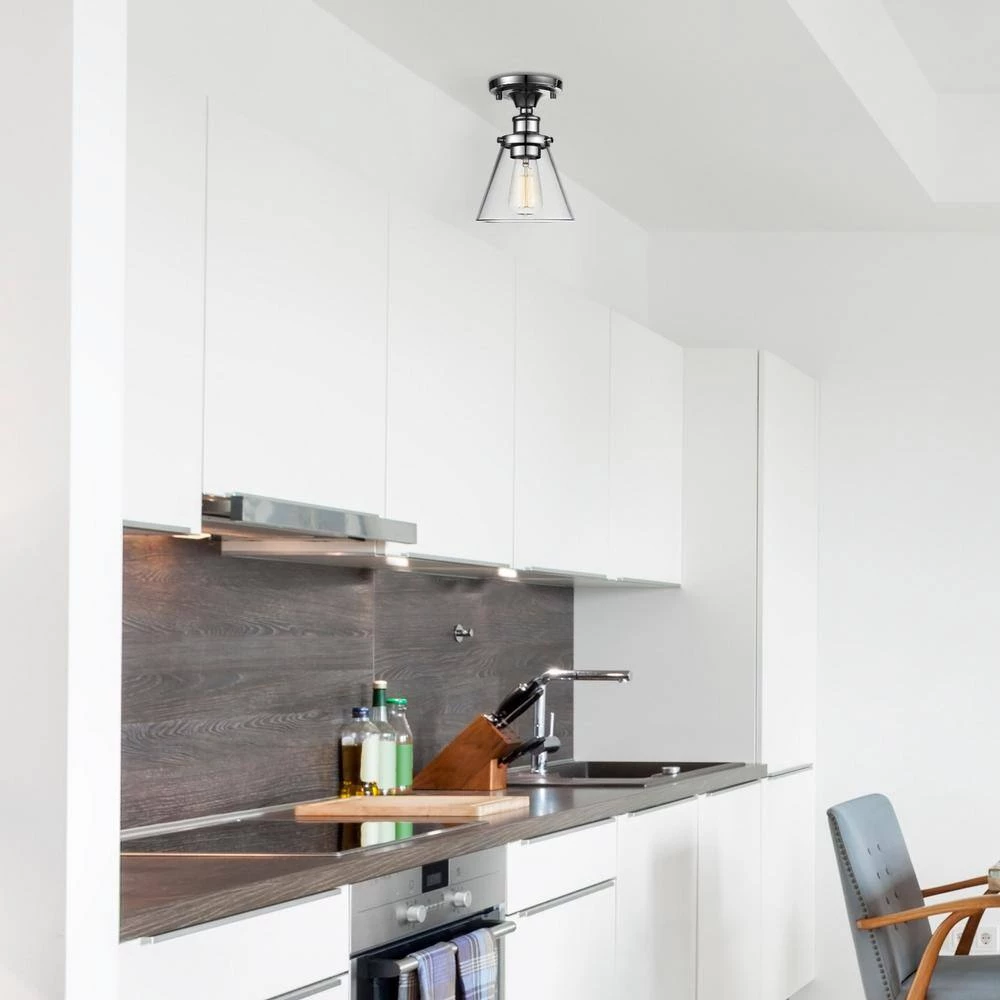 Fashioned after vintage inspired lighting, Globe Electric’s Mercer 1-Light Flush Mount Ceiling Light adds an authentic vintage feel to any room. Sitting close to the ceiling the clear glass shade and exposed bulb bring your eye upward to easily update your space. Add a Globe Electric vintage inspired Edison bulb to create a look that is truly unique and eye catching. The chrome finish and vintage look socket complements any decor with ease. Fully compatible with dimmable LED bulbs and dimmer switch, this fixture can match any mood or application. Ideal for use in kitchens, restaurants, bars, living rooms, dining rooms and more. Includes all mounting hardware for quick and easy installation and requires one 60-Watt max medium base bulb (sold separately).