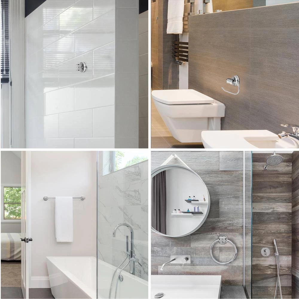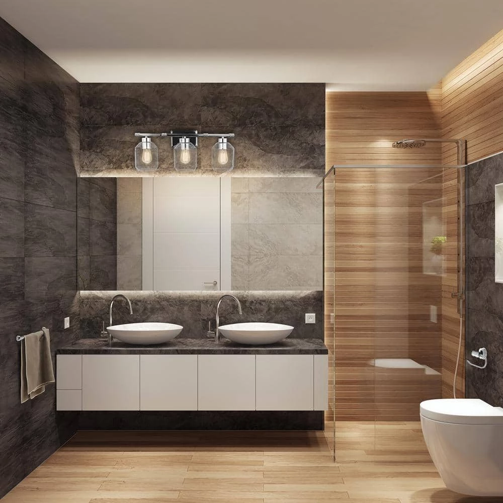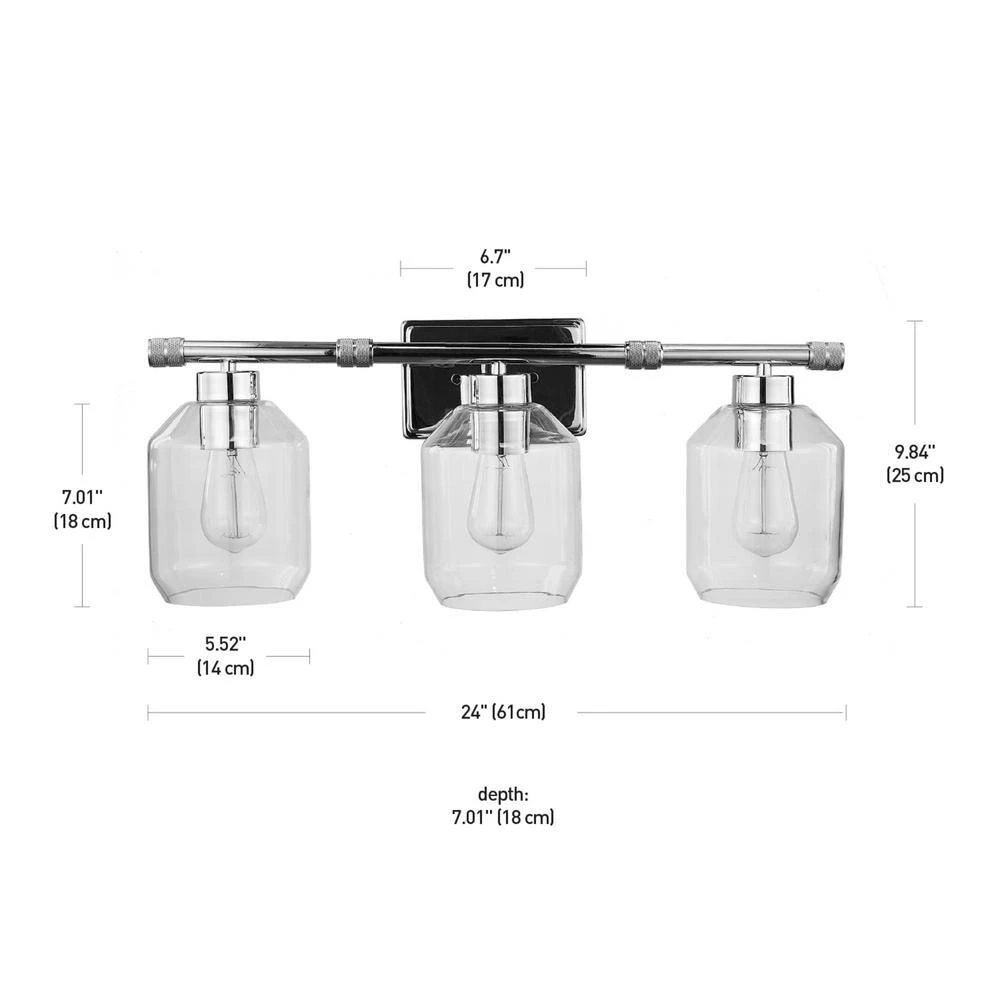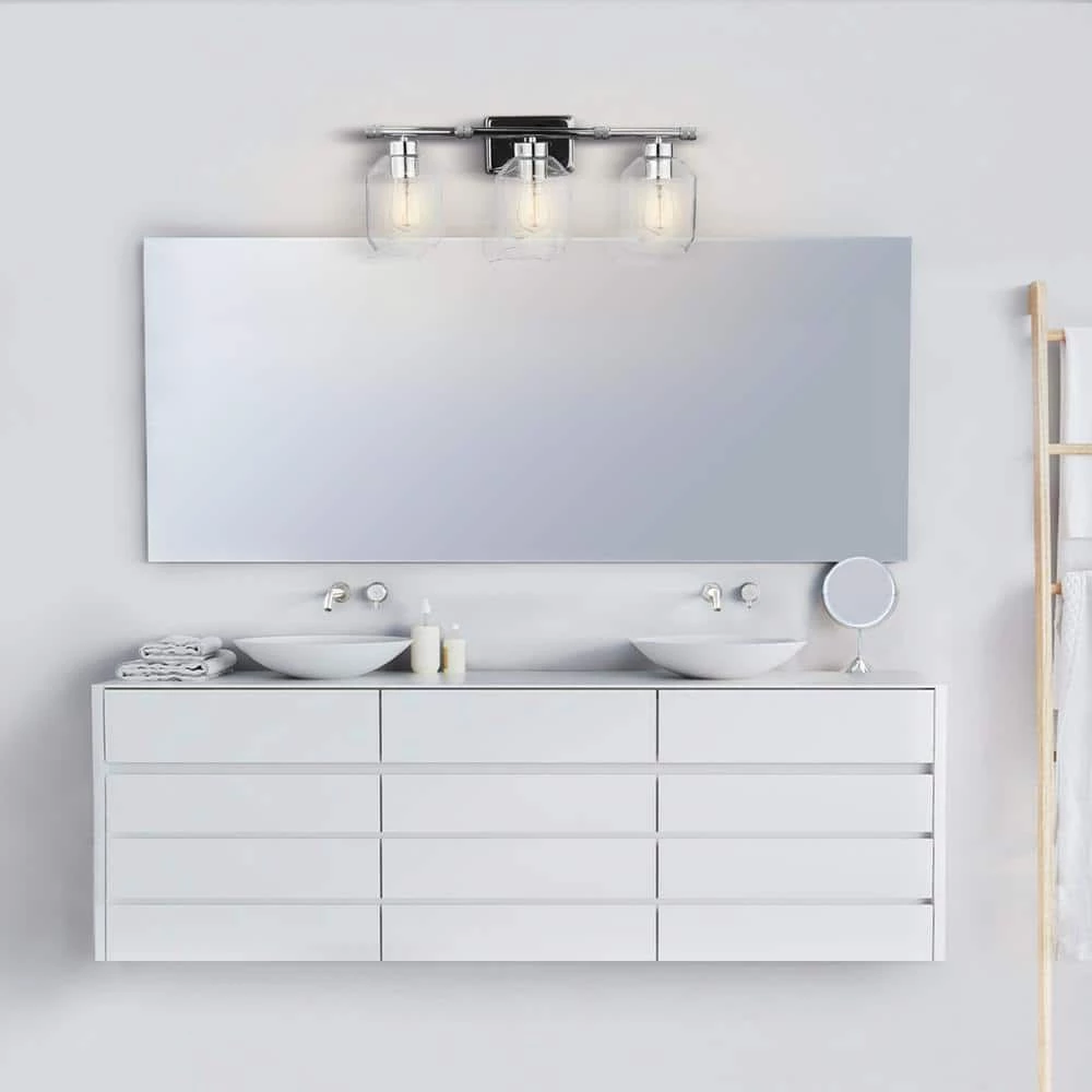 - All-in-1: update your bathroom easily with a matching 3-light vanity fixture, towel bar, toilet paper holder, towel ring and robe hook with a stunning chrome finish