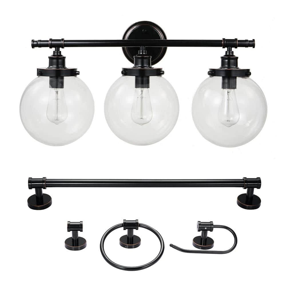 - All-in-1: update your bathroom easily with a matching 3-light vanity fixture, towel bar, toilet paper holder, towel ring and robe hook with a stunning oil rubbed bronze finish