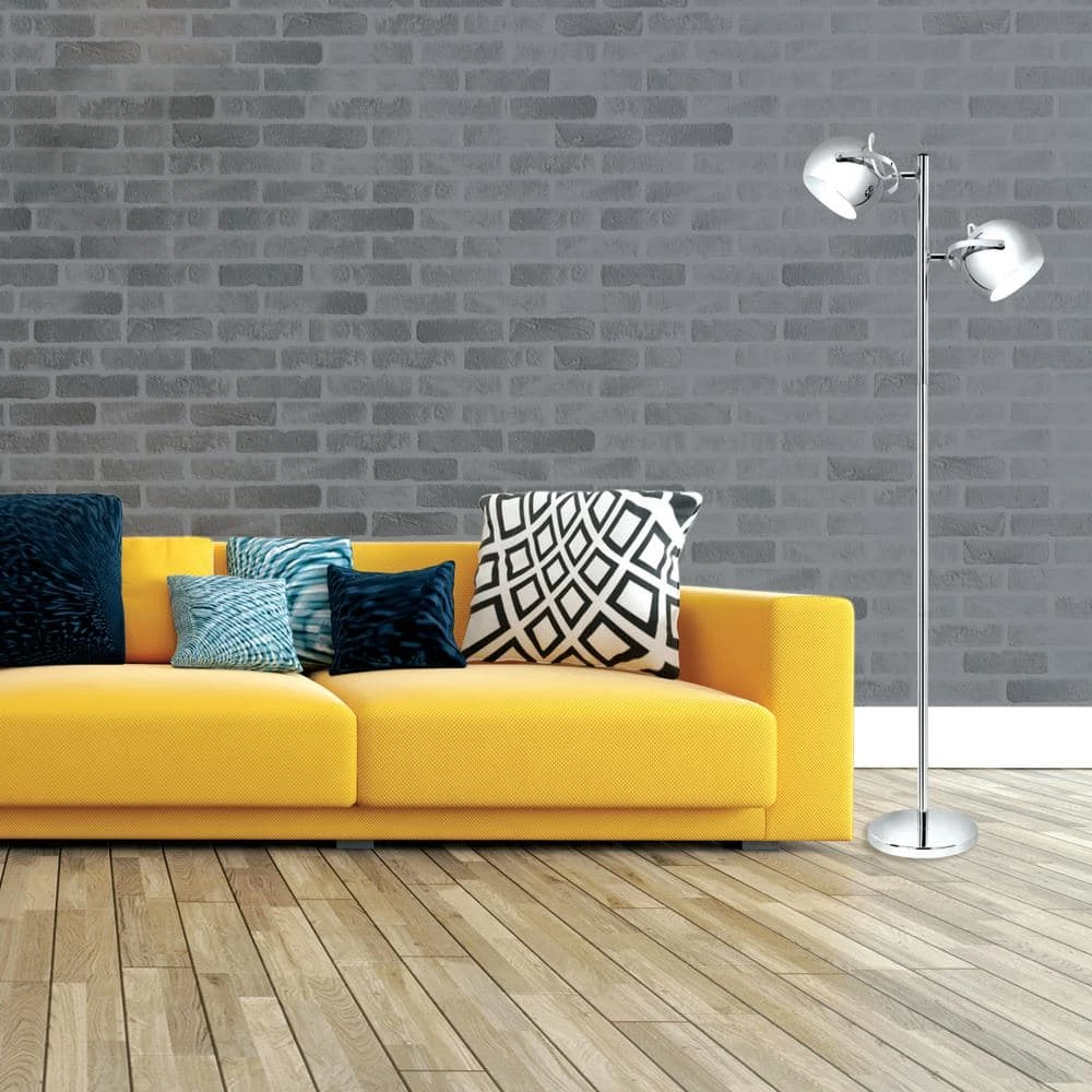 Globe Electric’s Miles 2-Light Adjustable Head Floor Lamp is a great way to add light to any room. With its clean and simple lines, it is the perfect addition to any decor. The on/off switch is conveniently located for quick and easy use. The chrome finish is a great accent for any space. The adjustable heads allow you to point the light where you need it the most. Requires two A19 medium base 60W bulbs (sold separately).