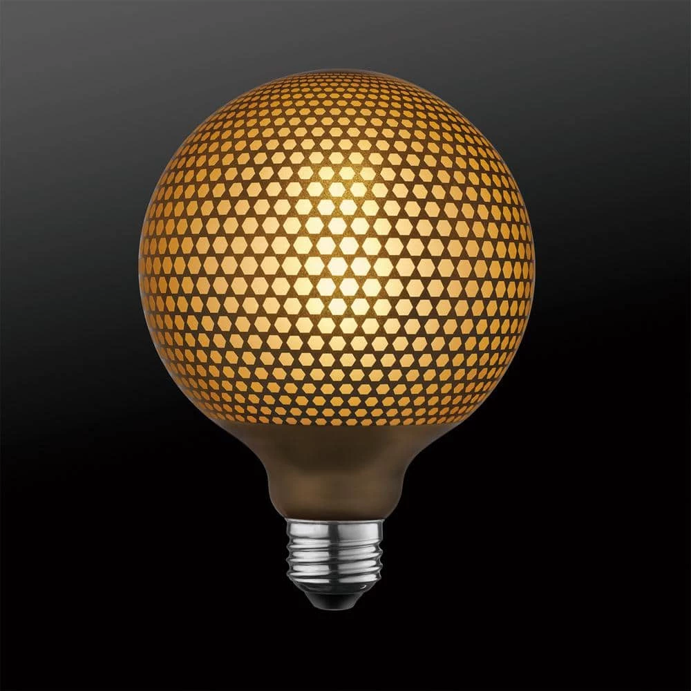 Create an atmosphere of delicate elegance with the Moderna Bulb collection by Globe Electric. Inspired design to be the centerpiece of any room, each bulb maintains an aesthetic harmony of old-world style. The copper hexagon design is reminiscent of a honeycomb shaped like a round glass bulb while the LED stays cool to the touch and offers warm ambient light. Try using just 1 or place the collection together to create a stunning centerpiece for any room. Perfect to show off, and larger than a traditional bulb, the Moderna Copper Hexagon LED Bulb works best with an exposed socket lamp or fixture, or under a clear glass shade.