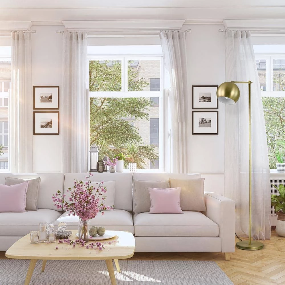 The timeless Molly Floor Lamp is the perfect accessory. With a classic gold finish and round shade, this lamp complements any decor. The slim profile and five-foot height is ideal for a living room, bedroom or dining room and can be placed anywhere your heart desires. With a slightly exposed bulb, you can create a variety of different looks by using a Globe Electric vintage Edison bulb. An in-line ON/OFF switch is super convenient while the five-foot cord ensures that you can place the Molly Floor Lamp wherever you want – even if an outlet is nowhere near-by. Requires one E26/medium base light bulb (sold separately).