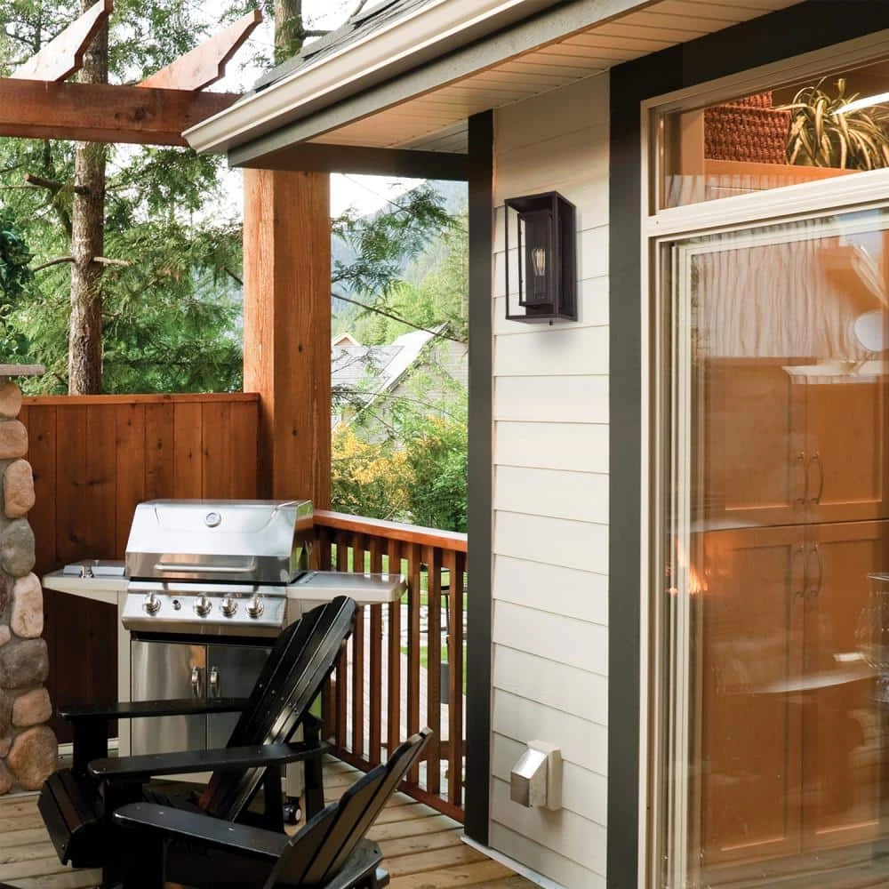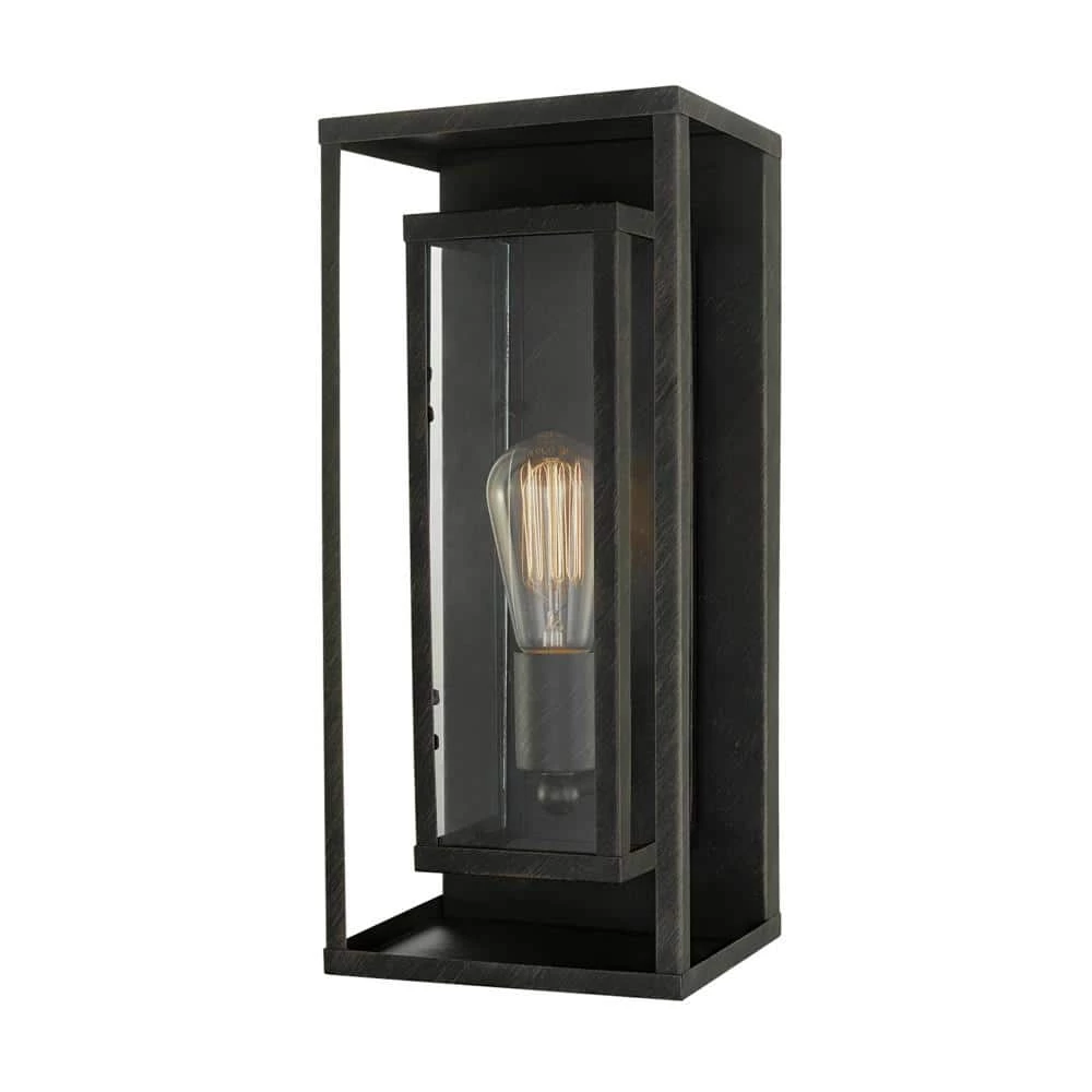 Upscale your outdoor space with the beautifully designed Montague 1-Light Outdoor Wall Sconce. Combining a double rectangle facade with a warm dark bronze finish, Globe Electric has created a wonderfully rustic piece to complement any outside living decor. With a lovely clear glass inner shade and no outer glass, you can illuminate your entranceway easily and brightly. Change the look of the wall sconce and make it uniquely your own by adding a different bulb. Globe Electric’s Vintage Edison S60 Squirrel Cage Light Bulb is recommended to complete the look.