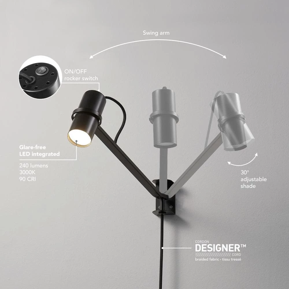 - Accent piece: emphasizing functional modern design, the 9 in. H, industrial swing arm, and pivoting shade lets you direct the light where you need it most next to your table, couch, office, desk, or bed