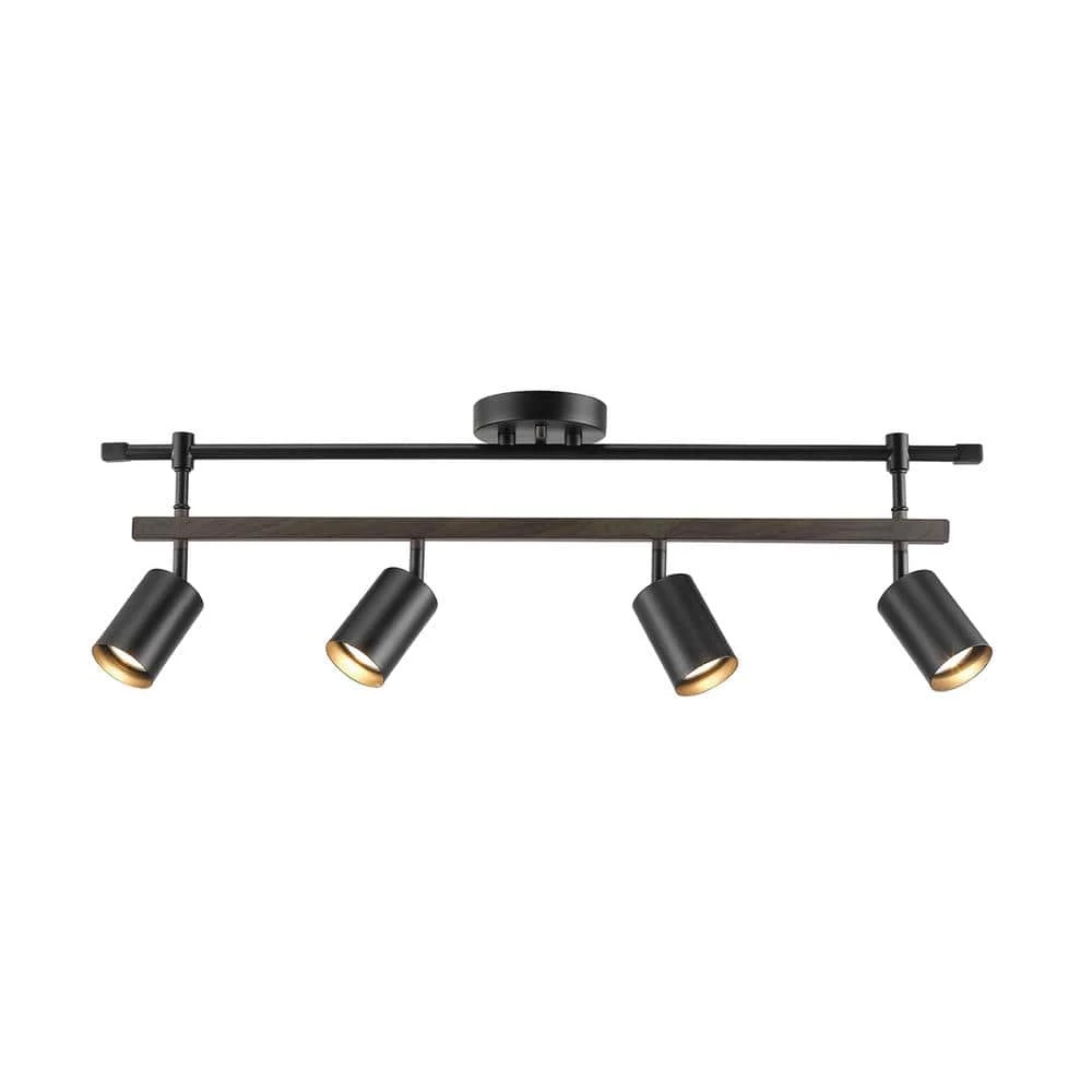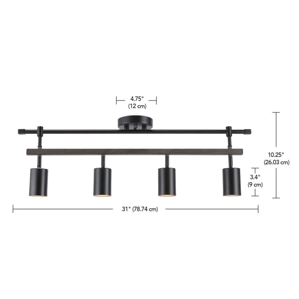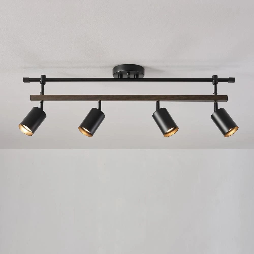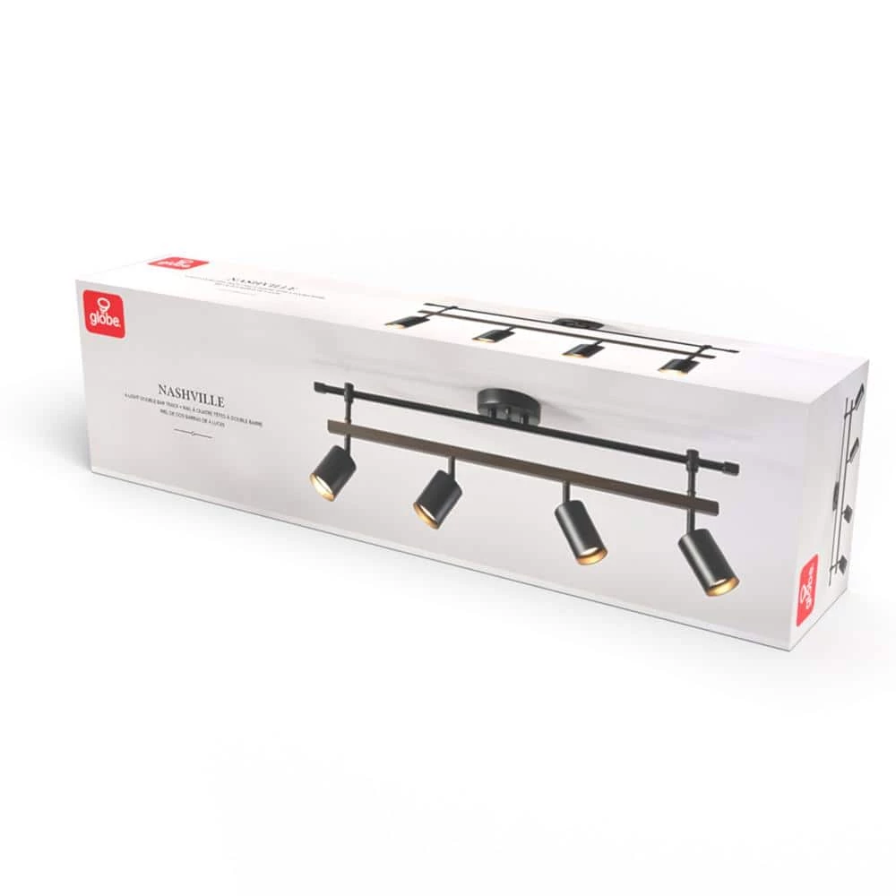 Stylish track lighting is the easiest way to light a larger space while keeping your home well designed. The Nashville Track Light by Globe Electric offers a modern farmhouse design. Matte black is paired with faux wood and trendy cylindrical track heads to drive home the warm farmhouse look. The double bar construction effortlessly completements any interior design. Each track head pivots so you can create unique lighting design in any space. Ideal for a kitchen, living room or den, this track light illuminates your home with stylish ease.