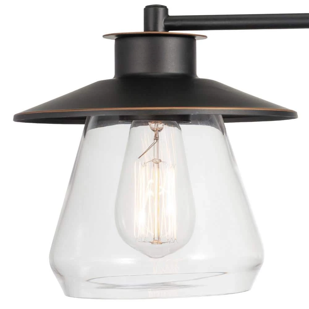 The Nate Collection by Globe Electric offers great lighting fixtures that complete your room decoration. With a modern take on the farmhouse design trend, the Nate 1-Light Wall Sconce is the answer to all your lighting needs. The clear glass shade is topped with a wide metal brim emphasizing the farmhouse design trend while the stunning double bar linear design adds a modern element. Not your average track light, the shades create gorgeous ambient lighting to finish the warm rustic feel that comes with a modern farmhouse design. This light is so versatile, it completely transforms a room by adding elements of rustic, industrial style.