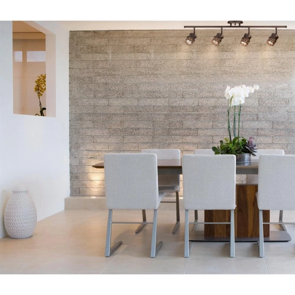 Because of innovative designers, track lighting has come so far in the decorating world. Gone are the days where you it to be hidden – let’s bring on the light. Versatility is the name of the game and Globe Electric is doing it right. Globe Electric’s Norris 4-Light Track Lighting has an oil rubbed bronze finish and lattice work on the champagne glass track heads to bring a new look to a classic design. Ideal for use in kitchens, bedrooms, living rooms, hallways, dining rooms – anywhere you want the ability to direct light exactly where needed without multiple light fixtures. Each of the four track heads is independently adjustable so you can point your light where you need it the most. Includes all mounting hardware for quick and easy installation and four 50W equivalent GU10 MR16 halogen light bulbs.