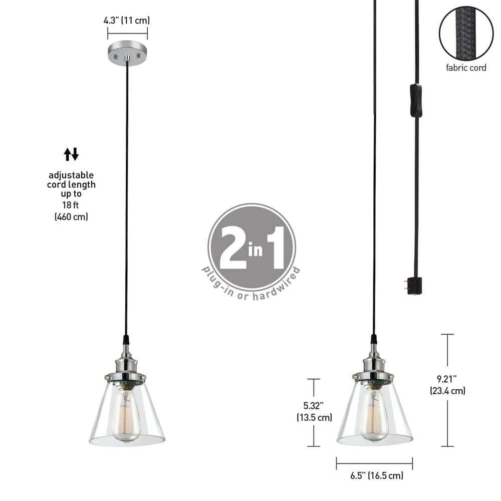 - PLUG-IN OR HARDWIRE CAPABILITY: the innovative 2-in-1 design allows you to install your pendant as a plug-in so you can place it anywhere in your home or use the hardwire option to create a sleek cordless look