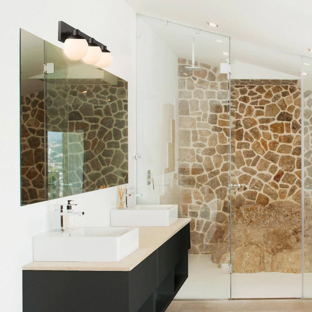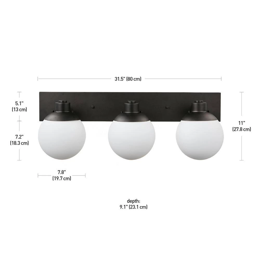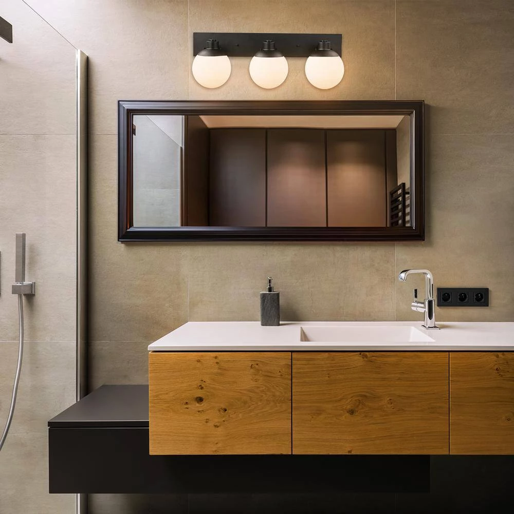 The Portland collection by Globe Electric is a stunning way to add modern elegance to your home. The classic globe shape is accented with a modern dark bronze finish and elegant matte opal white shades to bring a wonderful warm glow to any location. The 3-Light Vanity Light goes well in any room and is best suited for a bathroom, bedroom or kitchen. The soft pleasant glow is a perfect ambient light yet radiant 60-Watt bulbs create a great task light for any space.