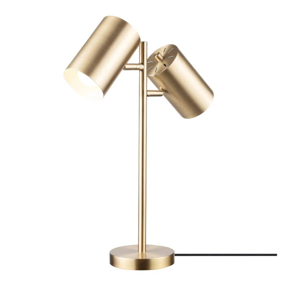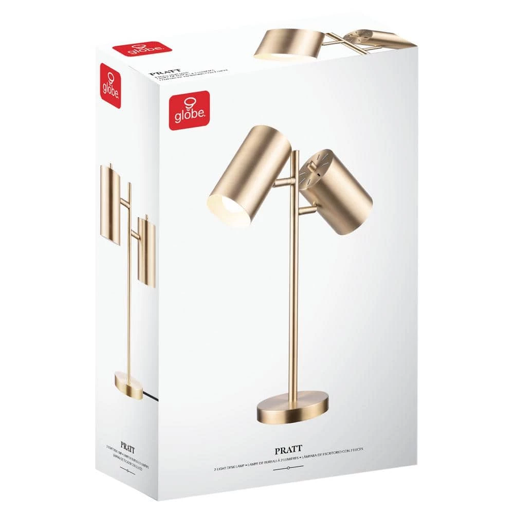 The Pratt Collection by Globe Electric offers a variety of styles that keep elegance in mind. With 2 cylindrical lamp heads that protrude from a slender lamp pole that juts from a weighted lamp base, the Pratt 2-Light Desk Lamp becomes the perfect focal point for any room. Each lamp head has it’s own on/off switch so you can choose how much or how little light you need for any situation. The matte brass color accents any decor while the slim profile is great for placement – perfect for adding a little glam to your bedroom, living room, home office or den.