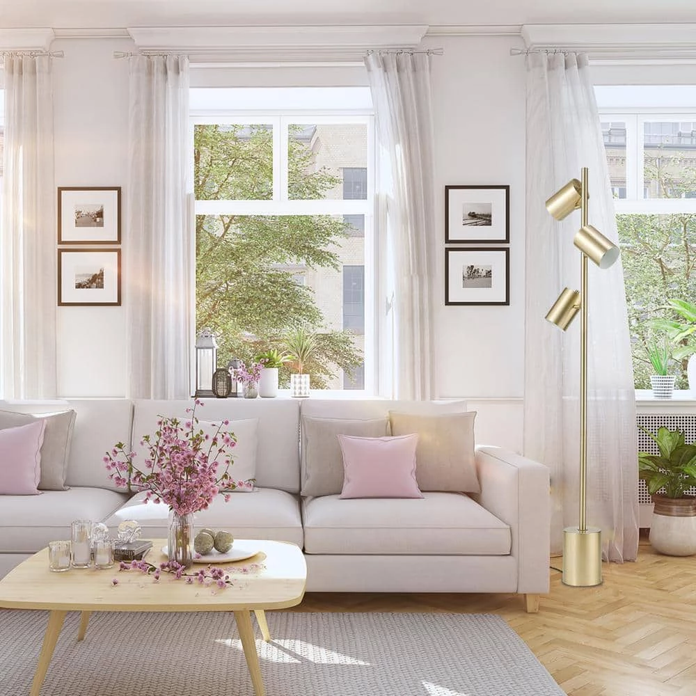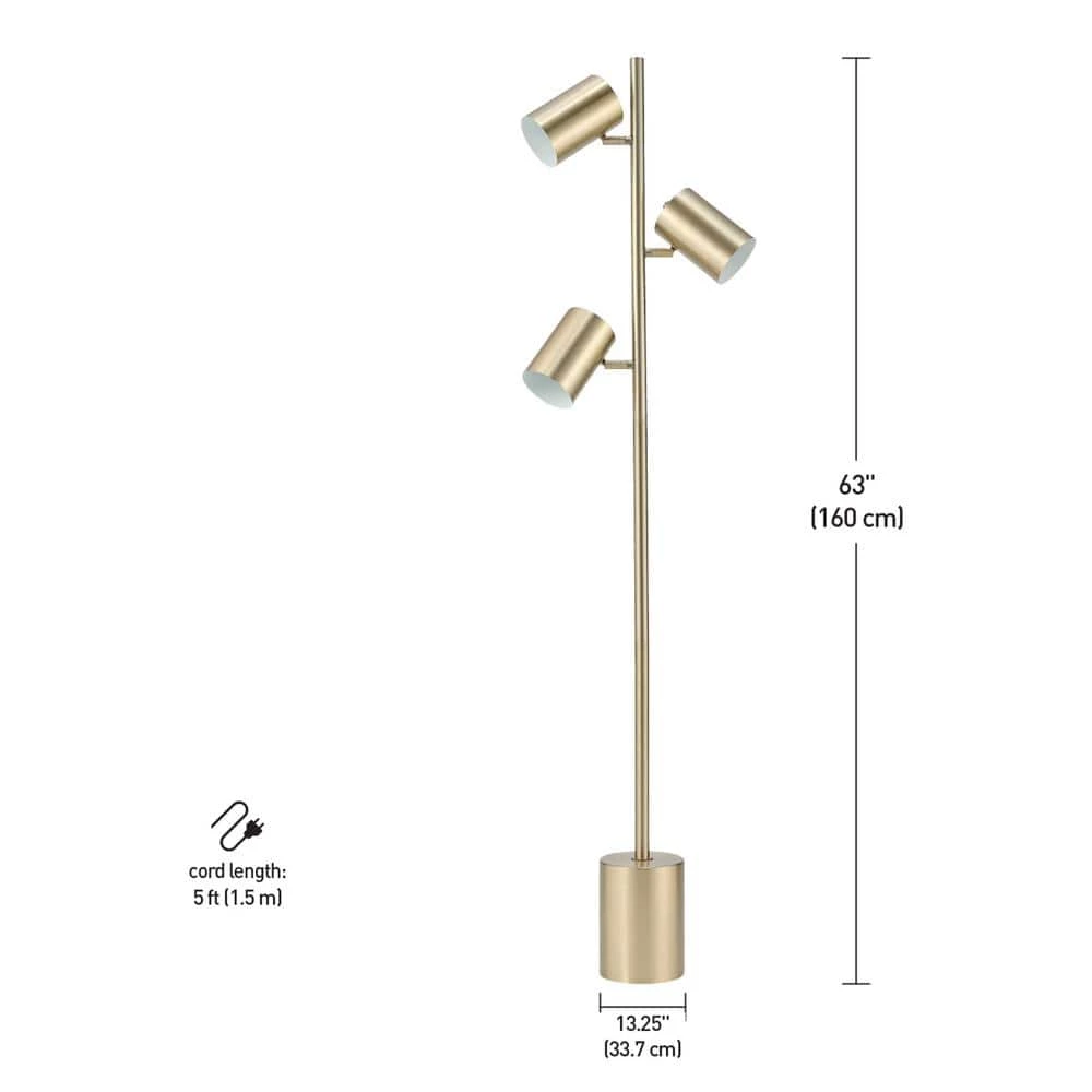 The Pratt Collection by Globe Electric offers a variety of styles that keep elegance in mind. With 3-cylindrical lamp heads that protrude from a slender lamp pole that juts from a large weighted lamp base, the Pratt 3-Light Floor Lamp becomes the perfect focal point for any room. Each lamp head has it’s own on/off switch so you can choose how much or how little light you need for any situation. The soft gold color accents any decor while the slim profile is great for placement – perfect for adding a little glam to your bedroom, living room or even home office.