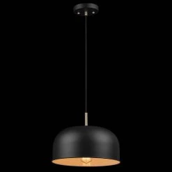 Harrow 1-Light Matte Black Shaded Pendant Light with Smoked Glass Shade by Globe Electric