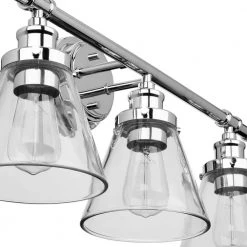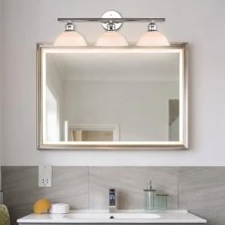 Pearson 3-Light Chrome Vanity Light with White Frosted Glass Shades by Globe Electric