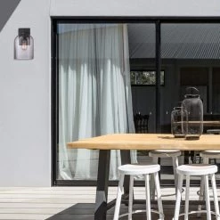 Utica 1-Light Black Outdoor/Indoor Wall Lantern Sconce with Smoked Glass Shade by Globe Electric
