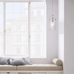 Parker 1-Light Plug-In or Hardwire Chrome Pendant Light with Clear Glass Shade by Globe Electric