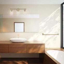 Jayden 3-Light Brushed Steel Vanity Light with Frosted Glass Shades by Globe Electric