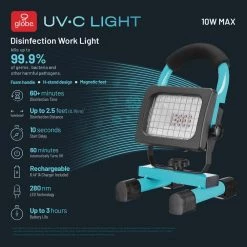 UV-C Light Disinfecting 10 Watt Rechargeable Work Light, Blue, Charger Included by Globe Electric