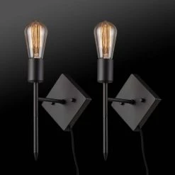 Rotterdam 1-Light Matte Black Plug-In or Hardwire Wall Sconce (2-Pack) by Globe Electric