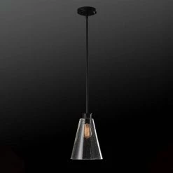 Brown 1-Light Matte Black Plug-In or Hardwire Pendant Lighting with 15 ft. Cord by Globe Electric