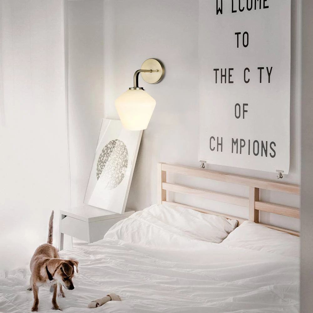 - Light your home in style: the stunning geometric opal glass shade and brass accents elevate this sconce to create a glamorous piece of functional art for your home