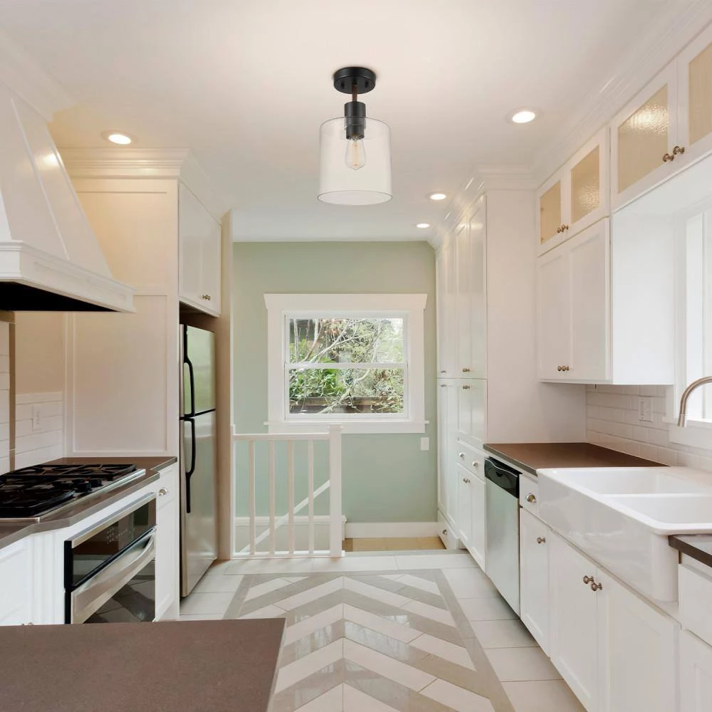 - Clear glass shade: the clear glass shade is perfect for changing the look of your flush mount – change the bulb, change the look, try a vintage Edison bulb for an effortless mid-century modern look or use a designer bulb for a completely different feel