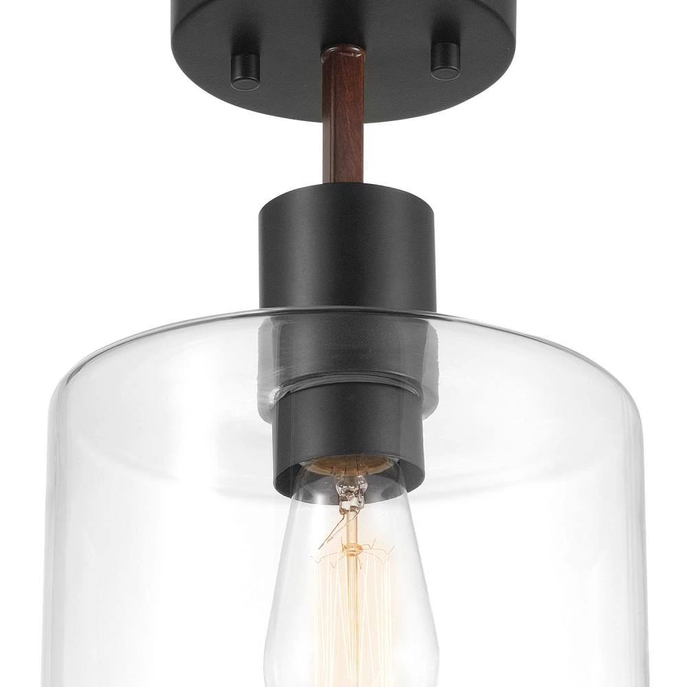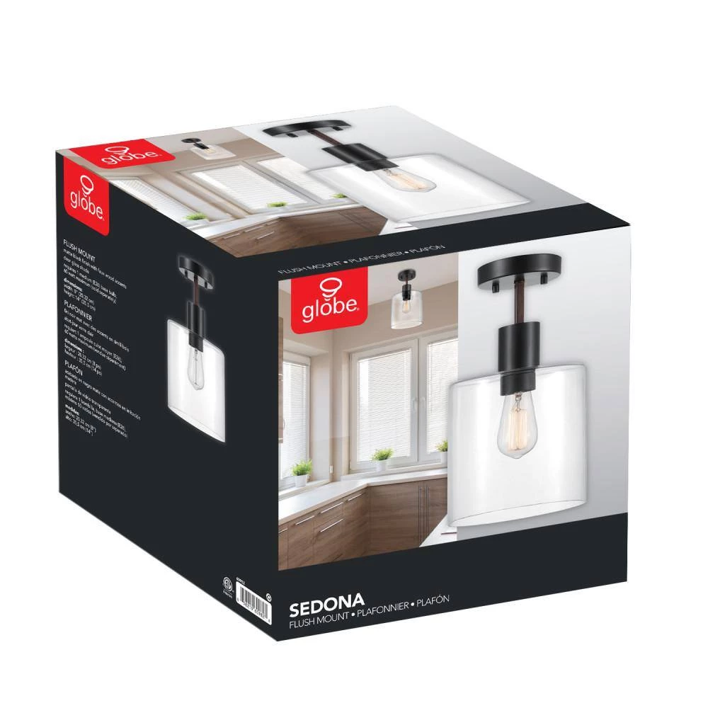 With warm faux wood accents and a matte black finish, the Sedona Collection by Globe Electric brings a refined modern farmhouse look to your home. The chic rectangular faux wood contrasts the round canopy and oval socket to create stunning visual appeal. The clear glass shade showcases the bulb of your choice and provides a perfect finish to a gorgeous 1-light flush mount.