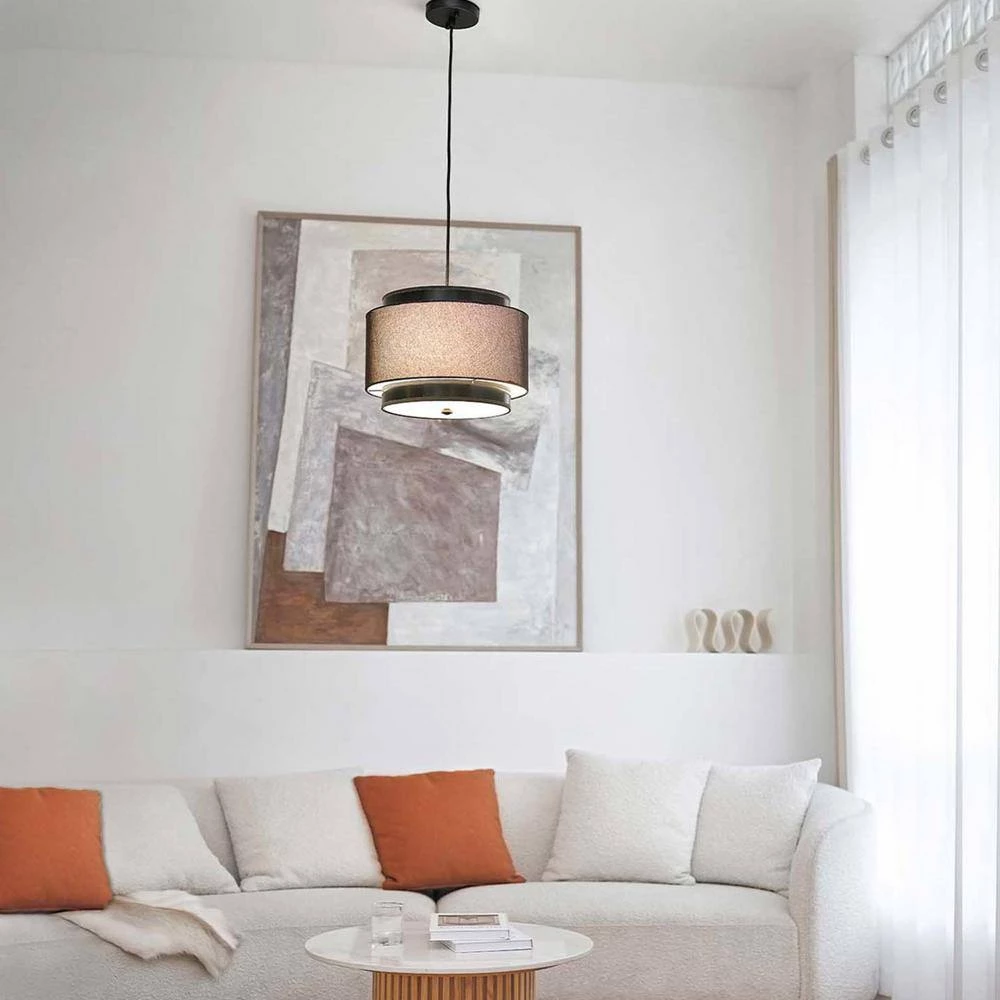 The Simon 2-Light Pendant Light from Globe Electric offers refined industrial design with a trendy modern style. The 14-inch wide black fabric shade and clever circular shape offer a design that brings refined flair to any space. The adjustable hanging cord lets you choose your desired length and looks great in every room. The neutral color palette is ideal for modern, contemporary, vintage, industrial, or lofty spaces and looks great in a dining room, living room, foyer, or kitchen.