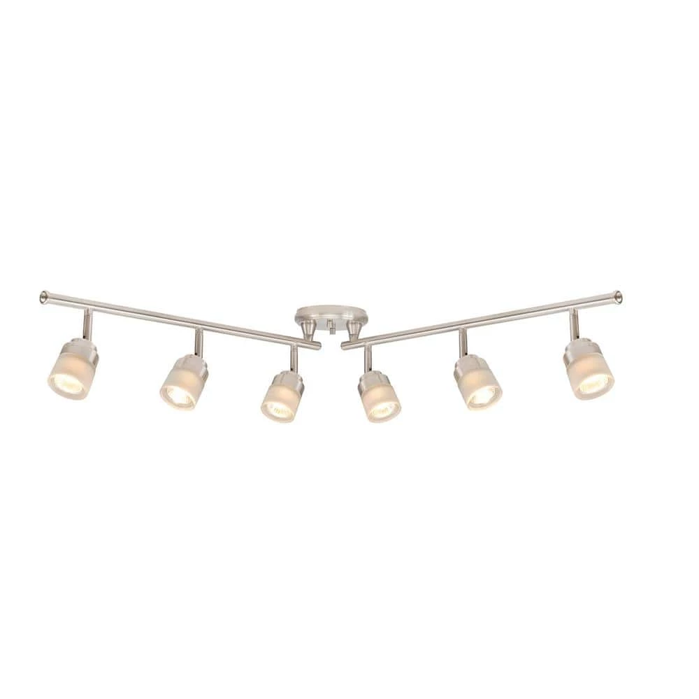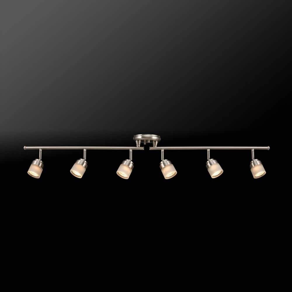The Spence 6-Light Track Light is distinguished by a subtle brushed nickel finish and frosted glass shades that give the impression of luxury in a big way. With a classic silhouette and trendy design, this track light can create a modern contemporary feel in any space. The frosted glass shades and included 50-Watt bulbs add to the versatile modern look. Perfect for any size home, the bars can be moved to create a long straight line, a V-shape or L-shape to best fit the space. And each track head can be adjusted to point light in the best direction, so you always have light where you need it most.