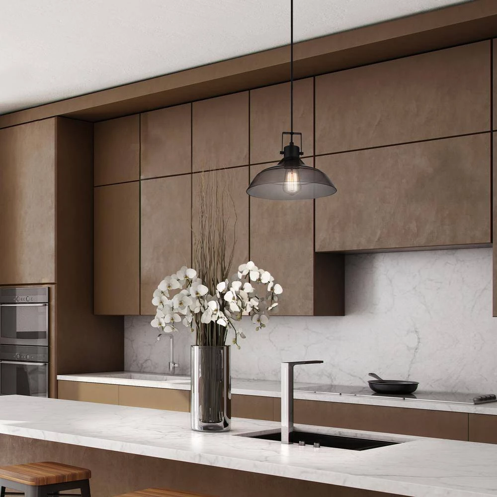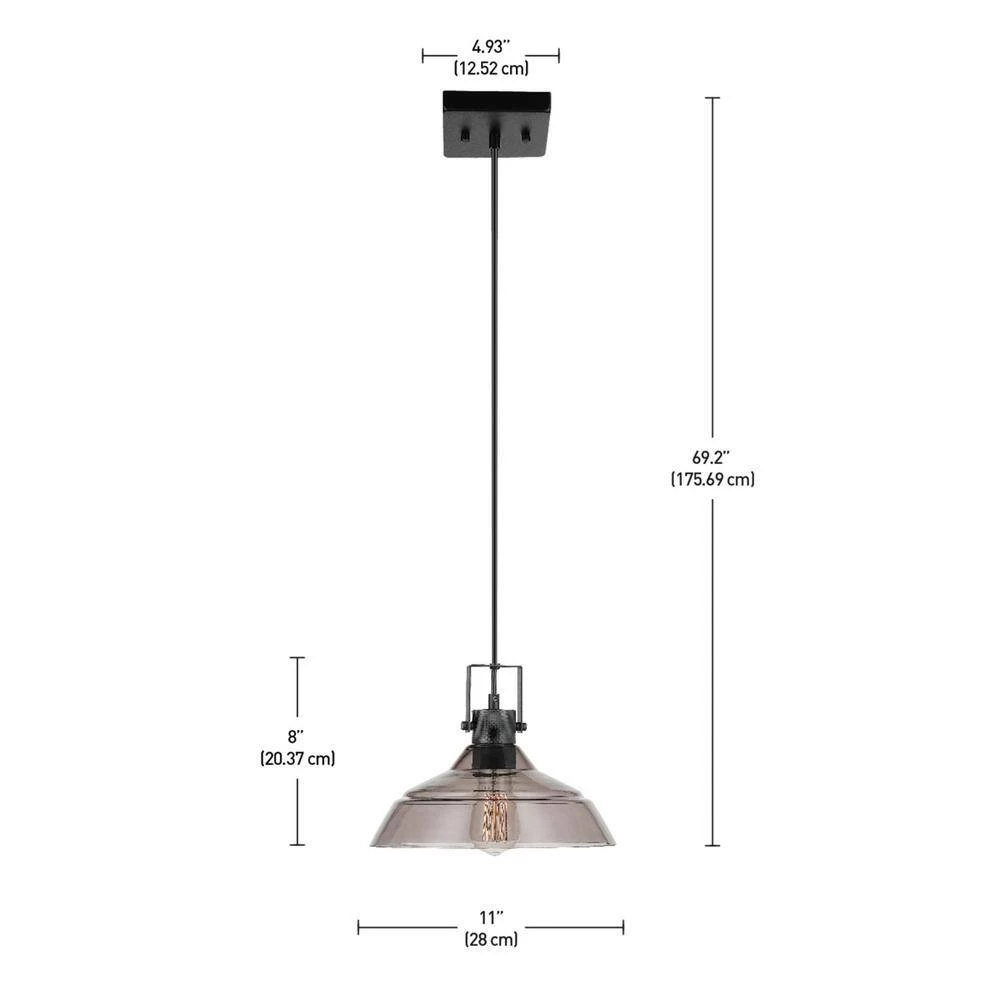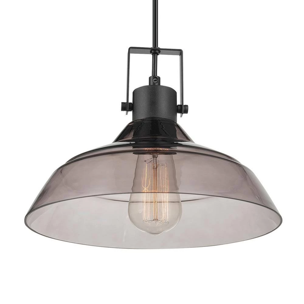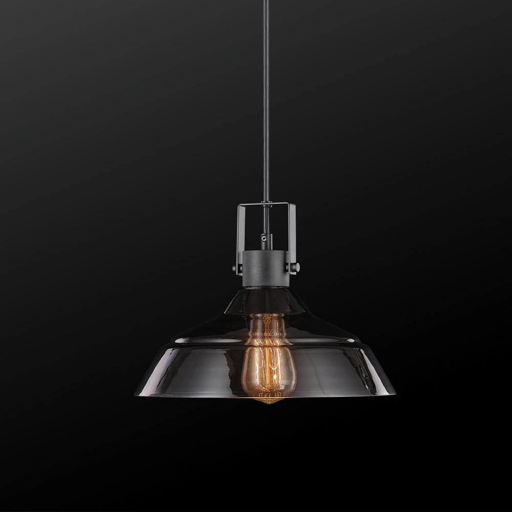 A clean simple mid-century modern design with stunning vintage appeal makes the Sutton Pendant Light stand out in any home. With a blend of stylish elements for a modern, traditional, vintage or farmhouse feel, the unique shape and smoke tinted glass of the farmhouse shade softly distributes light. Matte black accents, exposed hardware and a trendy textured socket finish the vintage inspired motif to take you on a journey through time. Perfect for hanging over your dining room table or in a living room as a perfect statement piece.