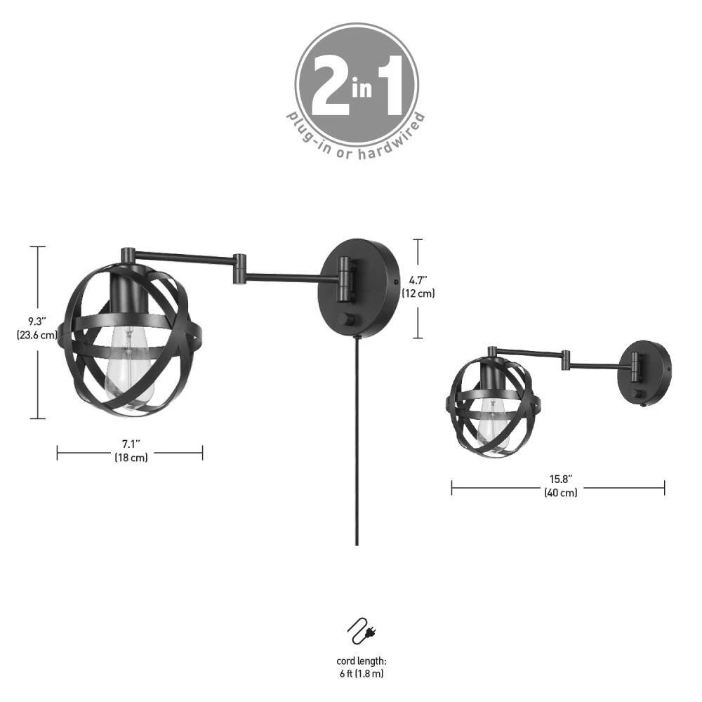 The Tatum 1-Light Swing Arm Wall Sconce is an excellent way to add a touch of vintage industrial design to any room in your home. A metal orb inspired shade caps off the traditional jointed arm and has a dark bronze finish that accents the vintage aspect of this industrial looking sconce. The swing arm allows you to move the light from side to side and gives you an extended reach of approximately 15-inches to be an ideal task light. Perfect for a living room, bedroom, kitchen or dining room, you’ll be able to create the lighting design you’ve always wanted, all while staying completely in style.