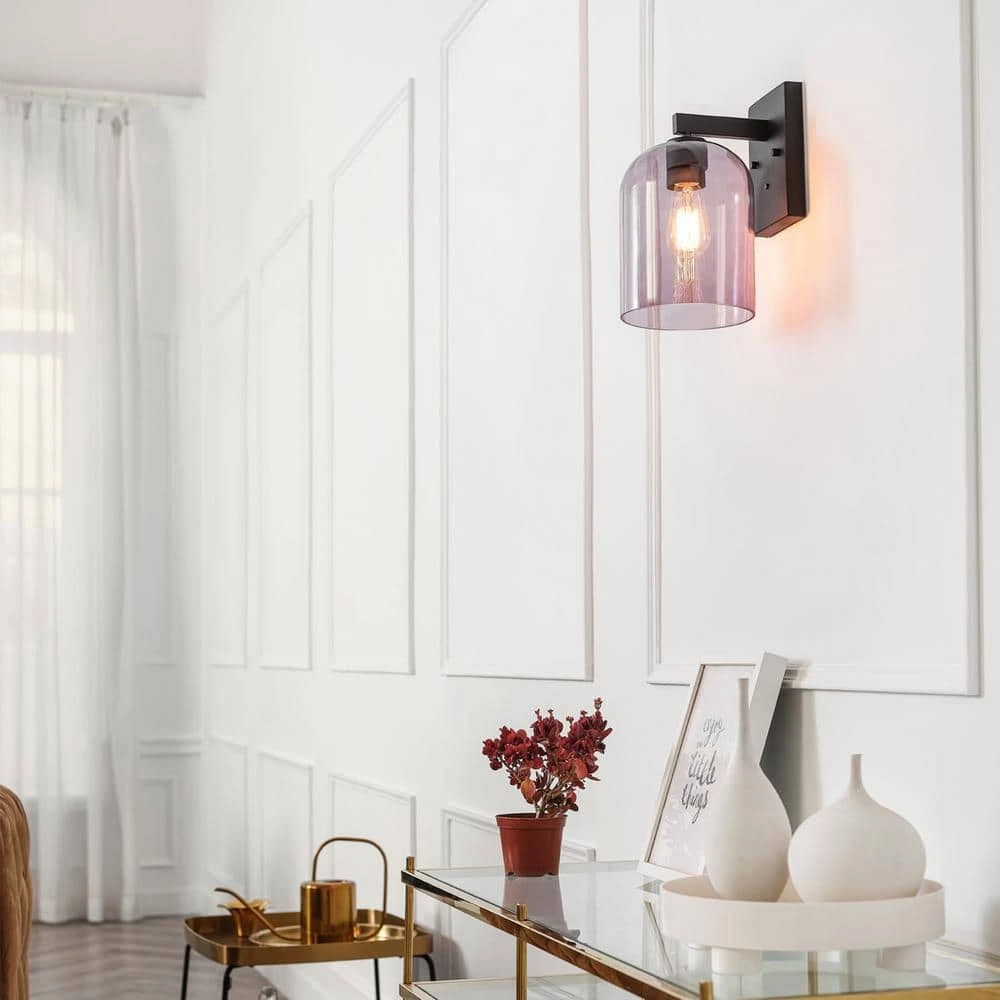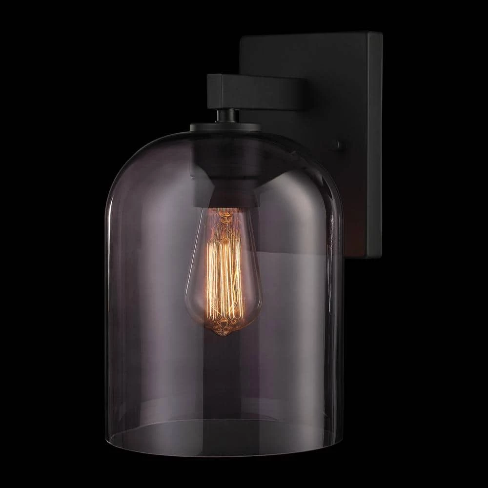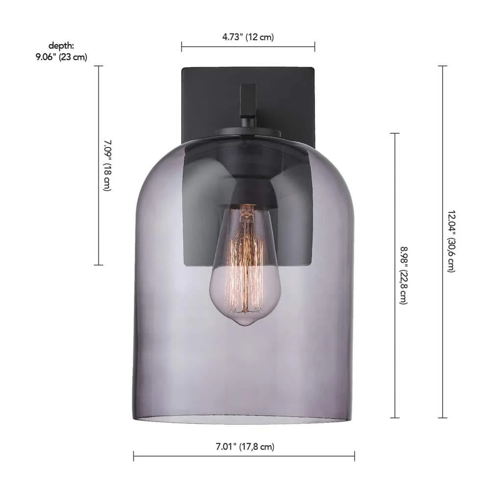 The overall shape and classic styling of the Utica Outdoor Wall Sconce by Globe Electric offers a modern vintage light ideal for any home. The smoked glass shade has a purplish tint that brings warmth and ambiance. The 12 in. size is ideal for placing on either side of your entryway as well as on either side of your bed for a modern styled bedroom. Changing the light bulb can create a different light for any mood – try a vintage Edison bulb to complete a vintage style or use a designer bulb for a more modern look.