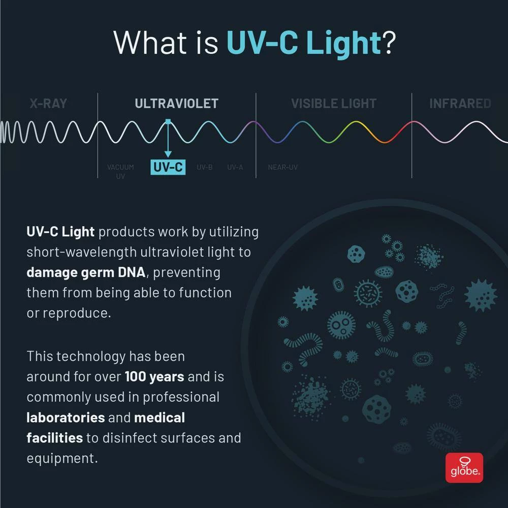 - Next generation of clean: harnessing the germicidal properties of the Sun’s UVC light, Globe Electric’s sanitizing products allow you to use these potent effects to target and neutralize germs, bacteria and other harmful pathogens in a cost saving way