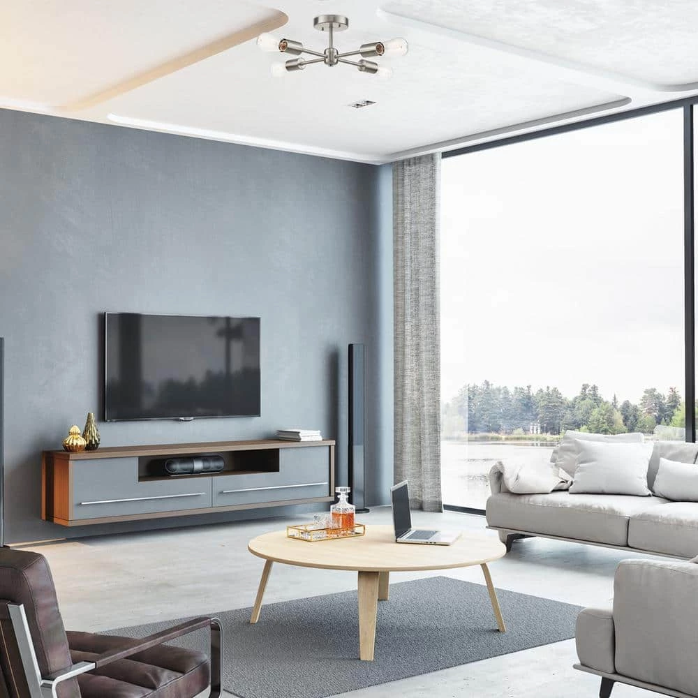 - Refined essentials: with a strong focus on the essentials, the open socket design of the vane flush mount ceiling light showcases the less is more concept utilizing a brushed nickel finish and a modern, refined Sputnik design