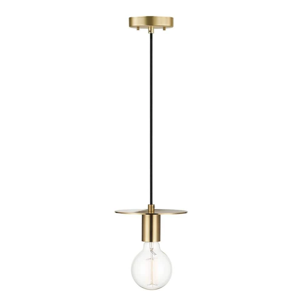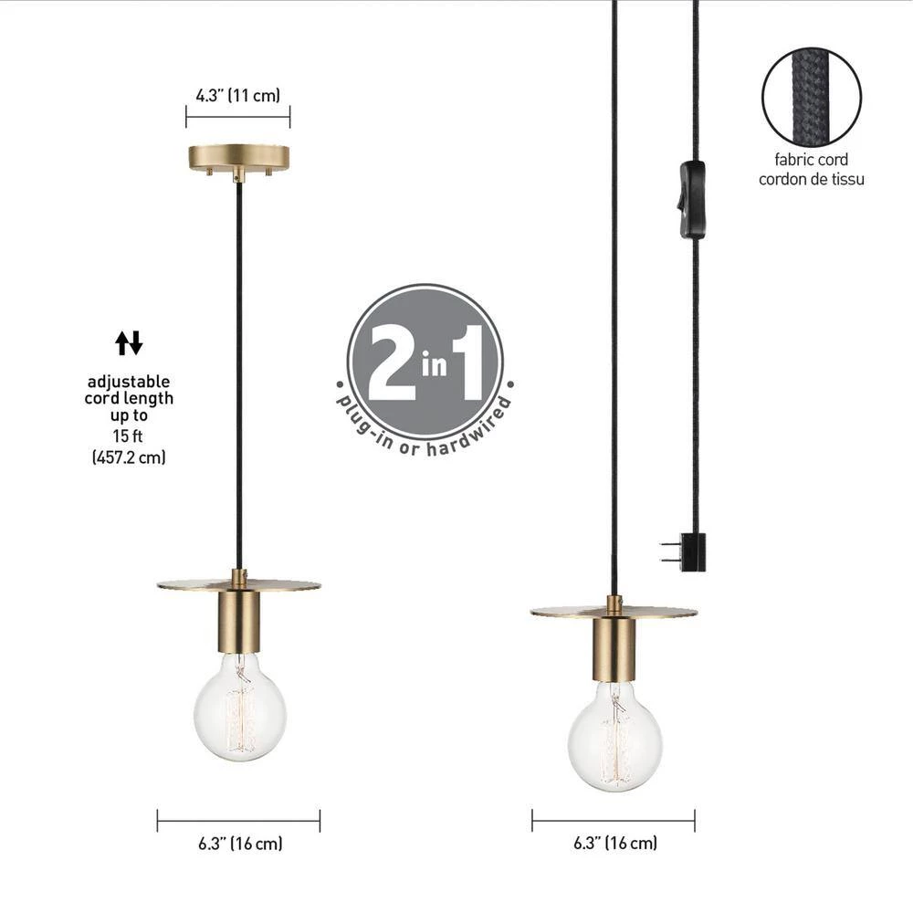 Simple and completely versatile, the Veruca Plug-In or Hardwire Pendant Light is the perfect finishing touch for any room. Complete with a striking modern design and a matte brass finish, this pendant adds a touch of modern glam style everywhere you place it. The black cloth cord and trendy color palette complements all interior designs and looks great hung alone or in a cluster above a side table in your bedroom, living room or office.