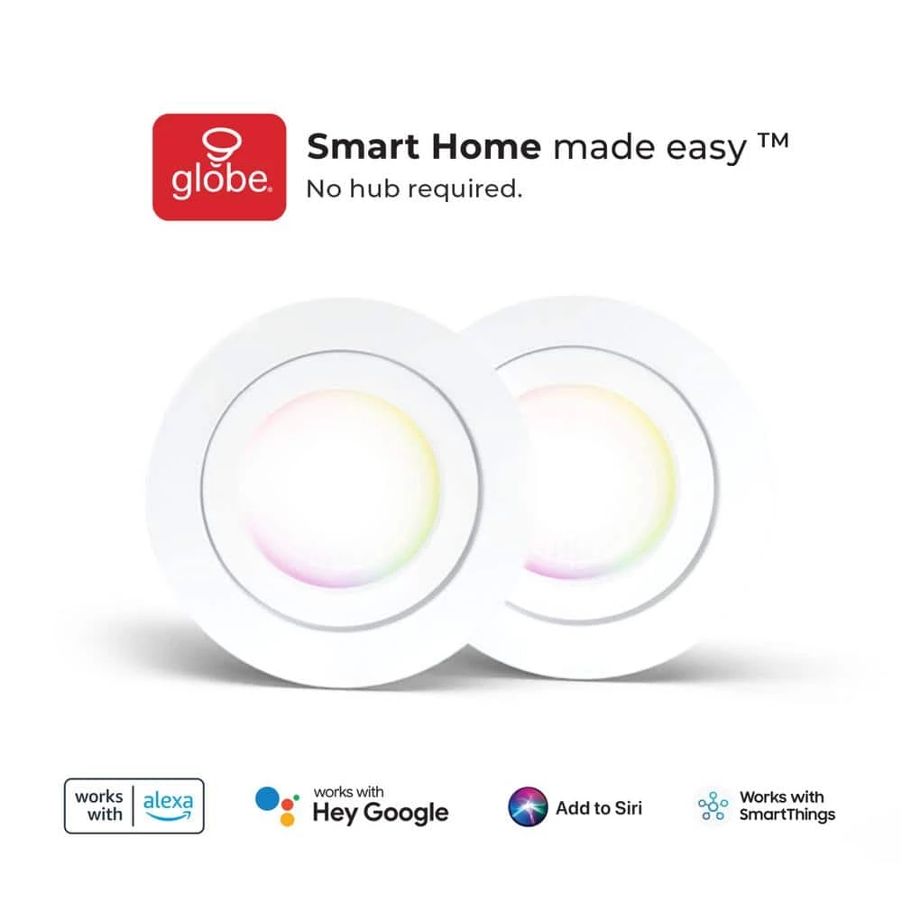 From sunrise to sunset, Globe Electric has you covered with smart recessed lights. Simply install as you would any other recessed light, pair it with the GLOBE SUITE App and you’re ready to go. Create the perfect atmosphere for your next party. Make sure your lights come on when you arrive home. Create different moods for different times of the-day or simply make sure your lights come on and turn off at the same time every-day to conserve energy. The choice is yours and the options are plentiful. Wet rated, they’re ideal for creating a relaxing atmosphere in your bathroom, shower or powder room. Perfectly hands -free, control your recessed light with the sound of your voice using your Google Assistant, Amazon Alexa, or Siri. Home automation has never been so easy.