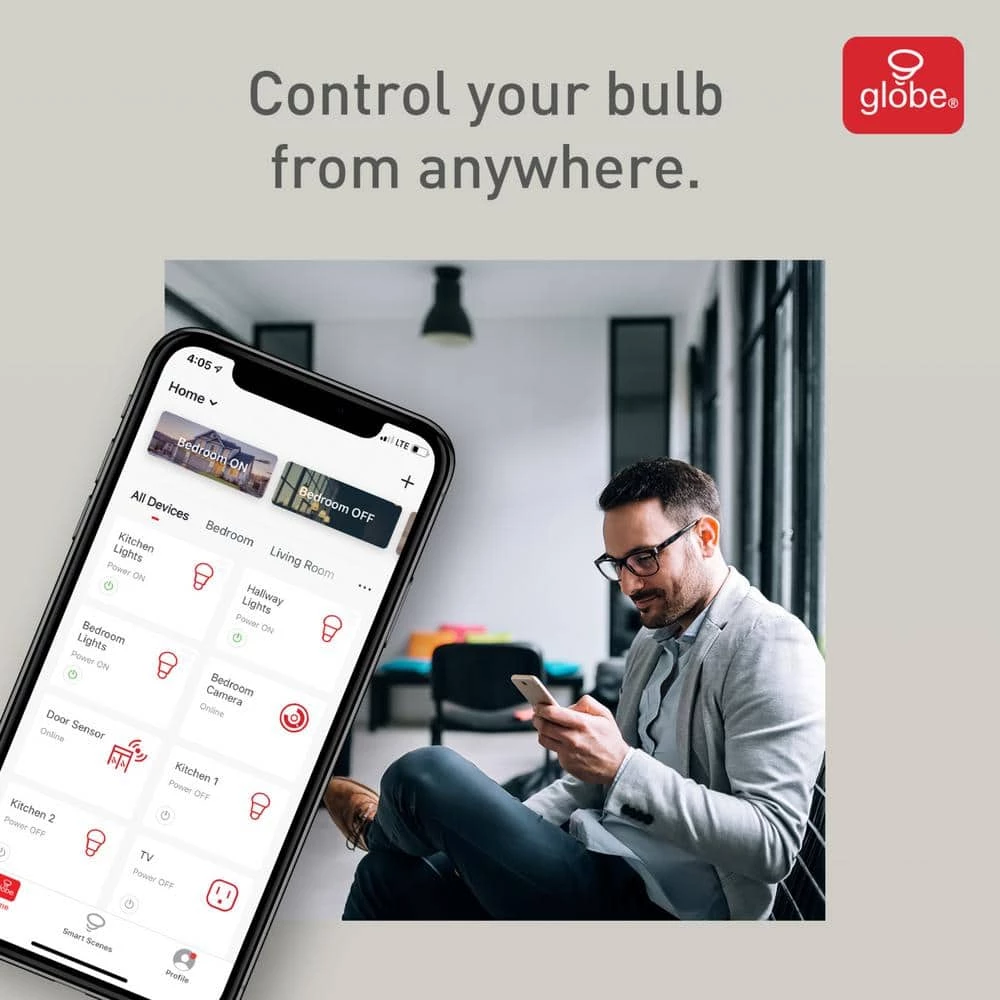 - Easy setup – no hub required: simply download the GLOBE SUITE app, connect to your home Wi-Fi, and sync your bulb, connect using the 2.4 GHz network connection and then go back to your 5 GHz connection if that works better for your home