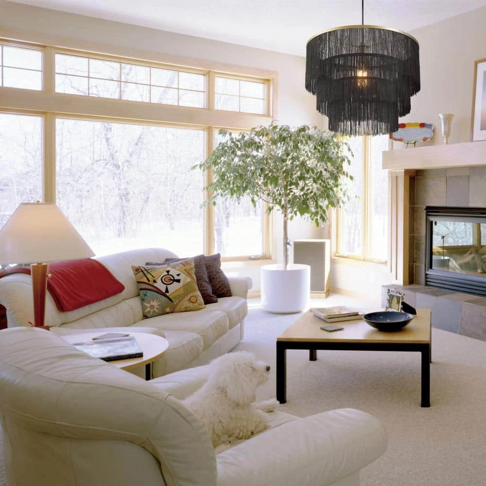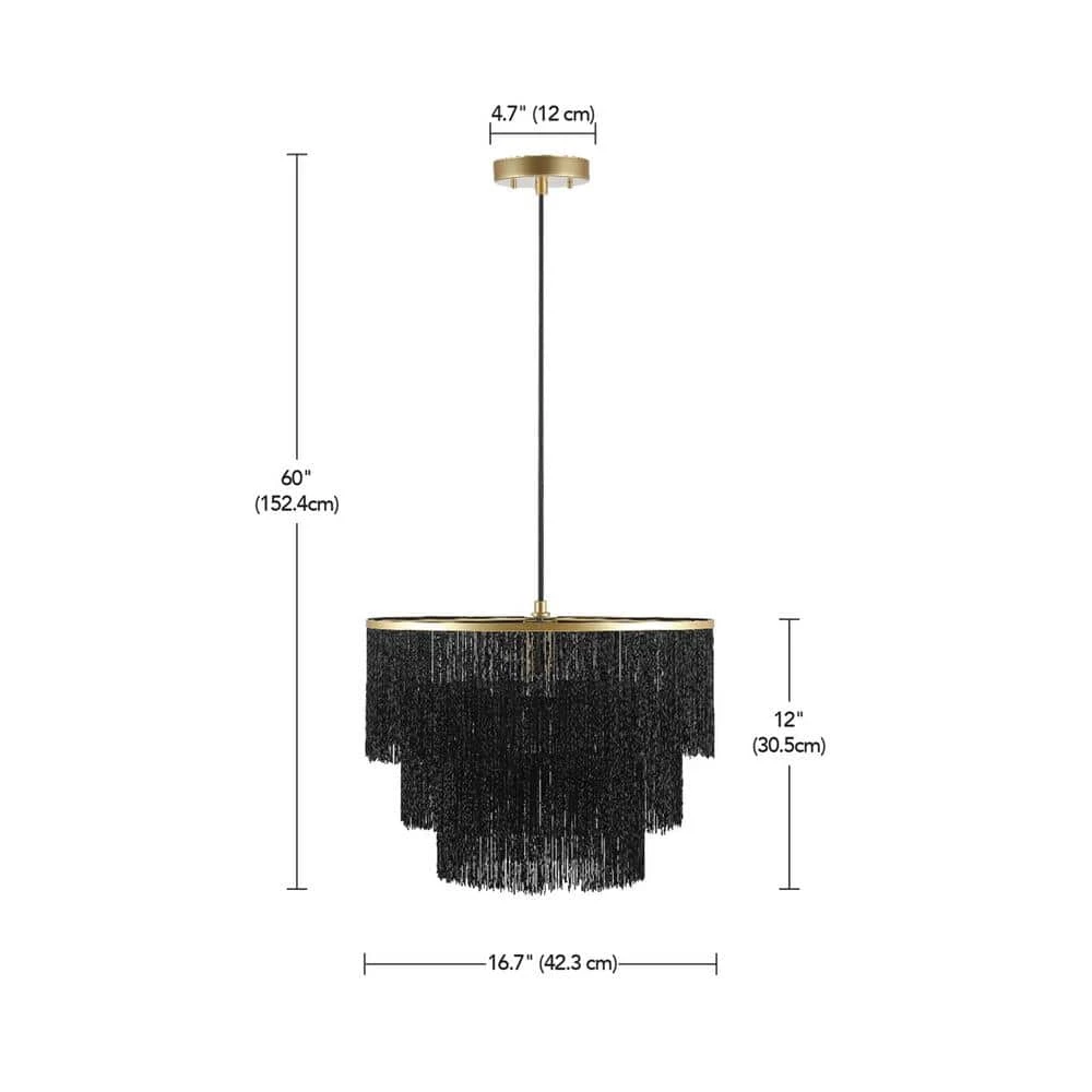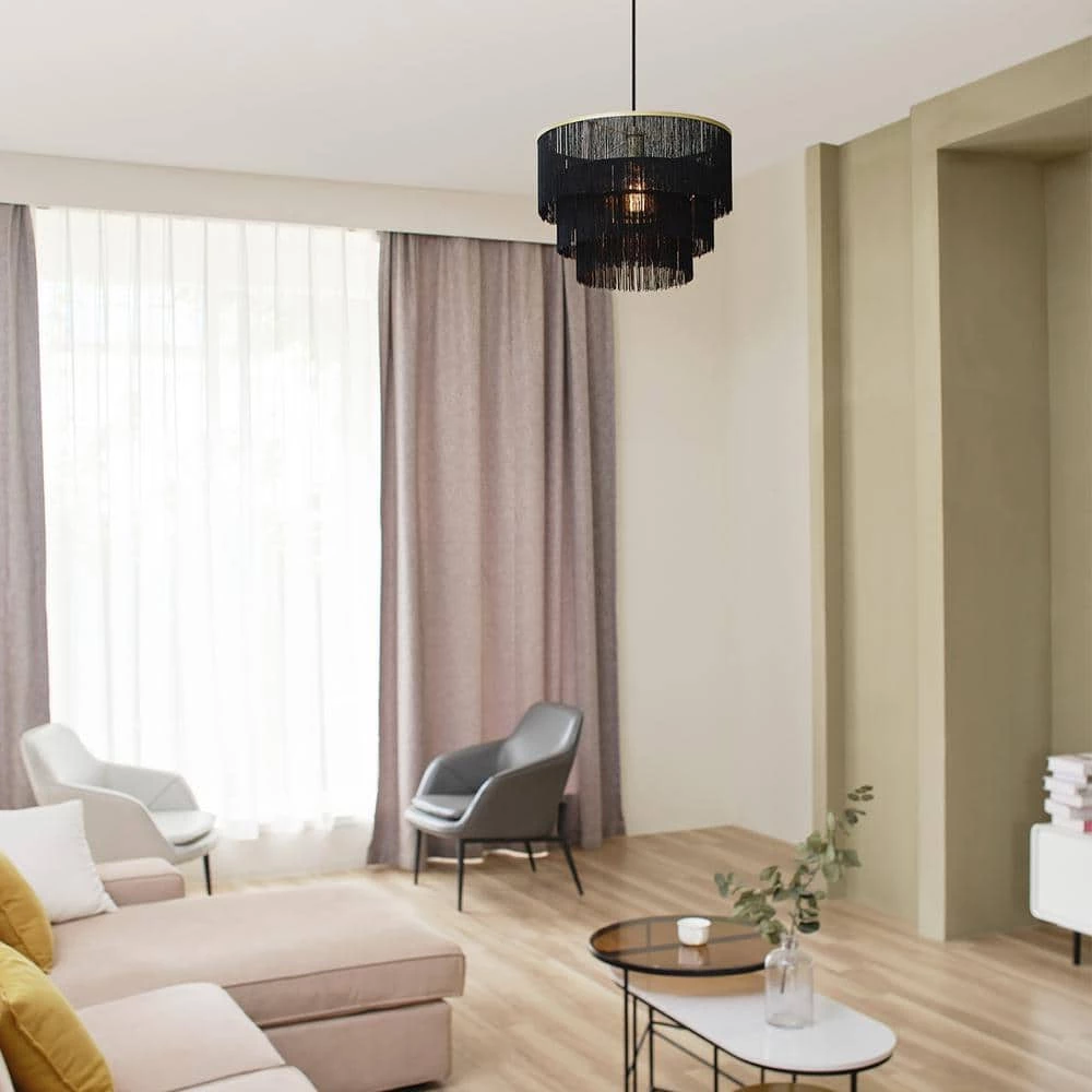 - Fabric fringe shade: modern styling meets a classic silhouette with the 3-tier fringe shade of this pendant light while offering gorgeous illumination for your home