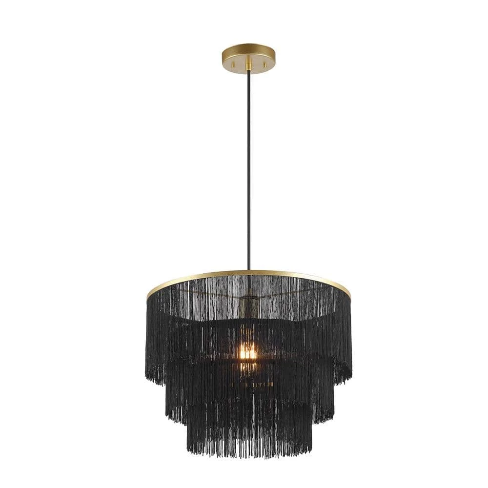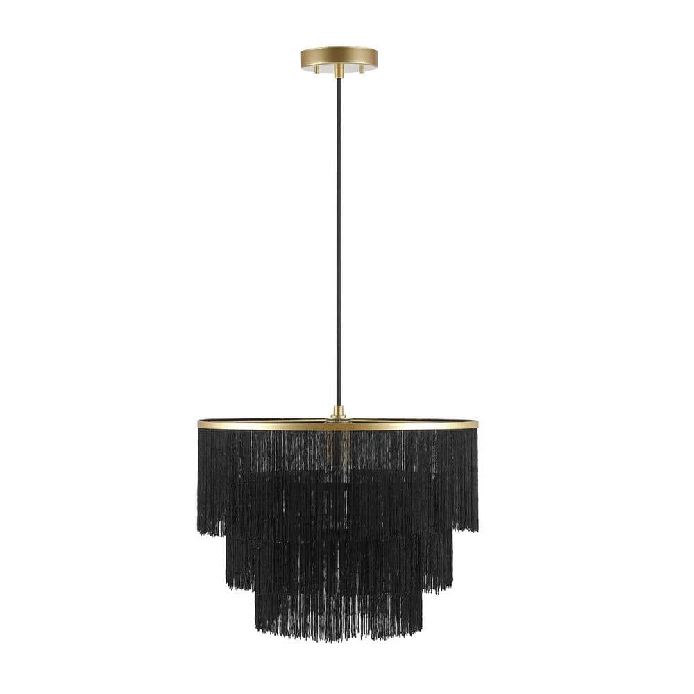 - Modern glam: the willow pendant Light offers a dramatic mix of matte gold accents and a retro-seventies black fabric fringe shade to create a glamorous modern glam light that entices the eye