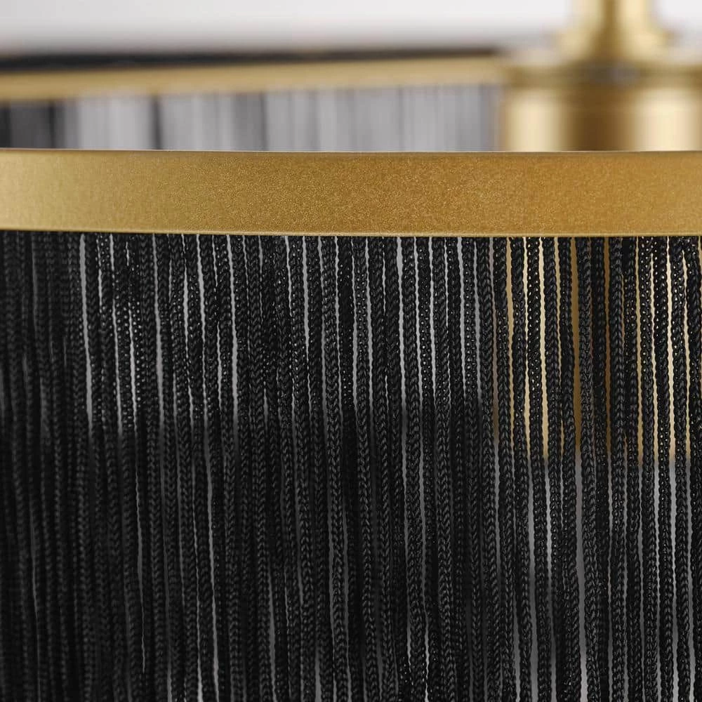 Glitz! Glamour! Style! The cascading black fringe of the Willow Pendant Light is a throwback to the glamorous Hollywood days of yesteryear but with a modern twist. The warm black fabric is expertly accented by a matte gold frame and hangs off a black fabric cord with a matching matte gold canopy to complete the design. Embellish your bedroom by hanging one on either side of your bed or use this fixture as the centerpiece in your living room or dining room.